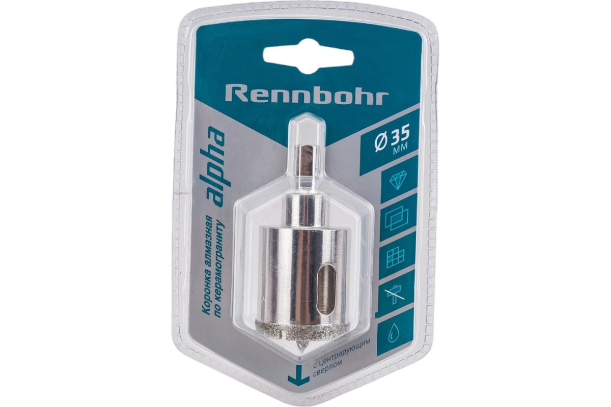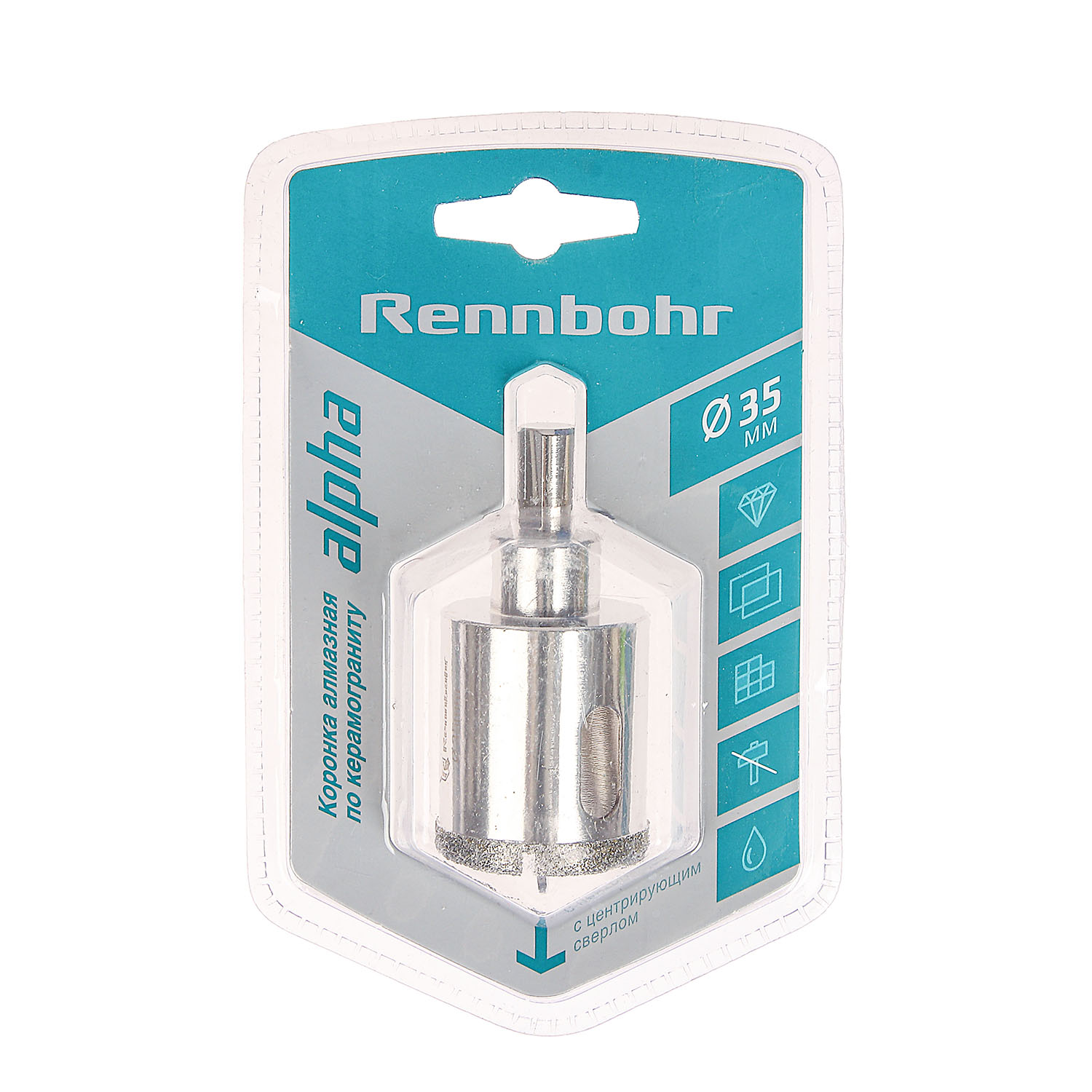 Коронка алмазная с центрирующим сверлом RENNBOHR 676235 используется для сверления керамогранита, керамической плитки, изделий из керамики.