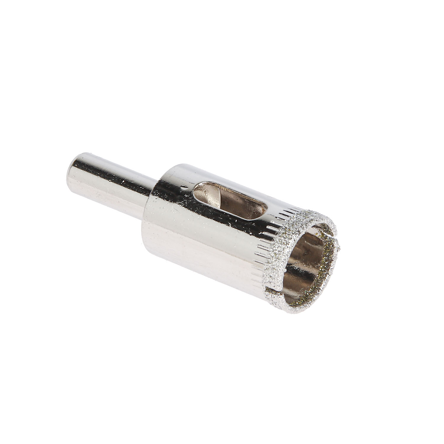 Коронка выполнена из качественной стали, имеет алмазное напыление, за счет которого отличается высокими режущими свойствами и длительным сроком службы.