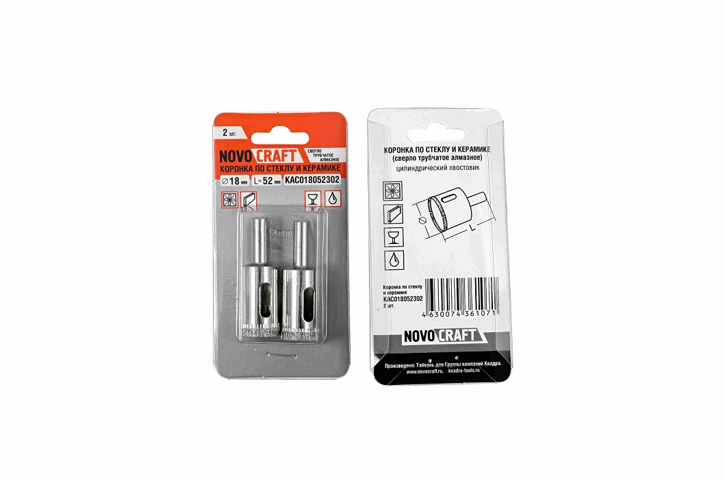 Коронка алмазная Novocraft KAC018052302 предназначена для работы с дрелью для сверления отверстий в таких материалах как стекло и керамика.