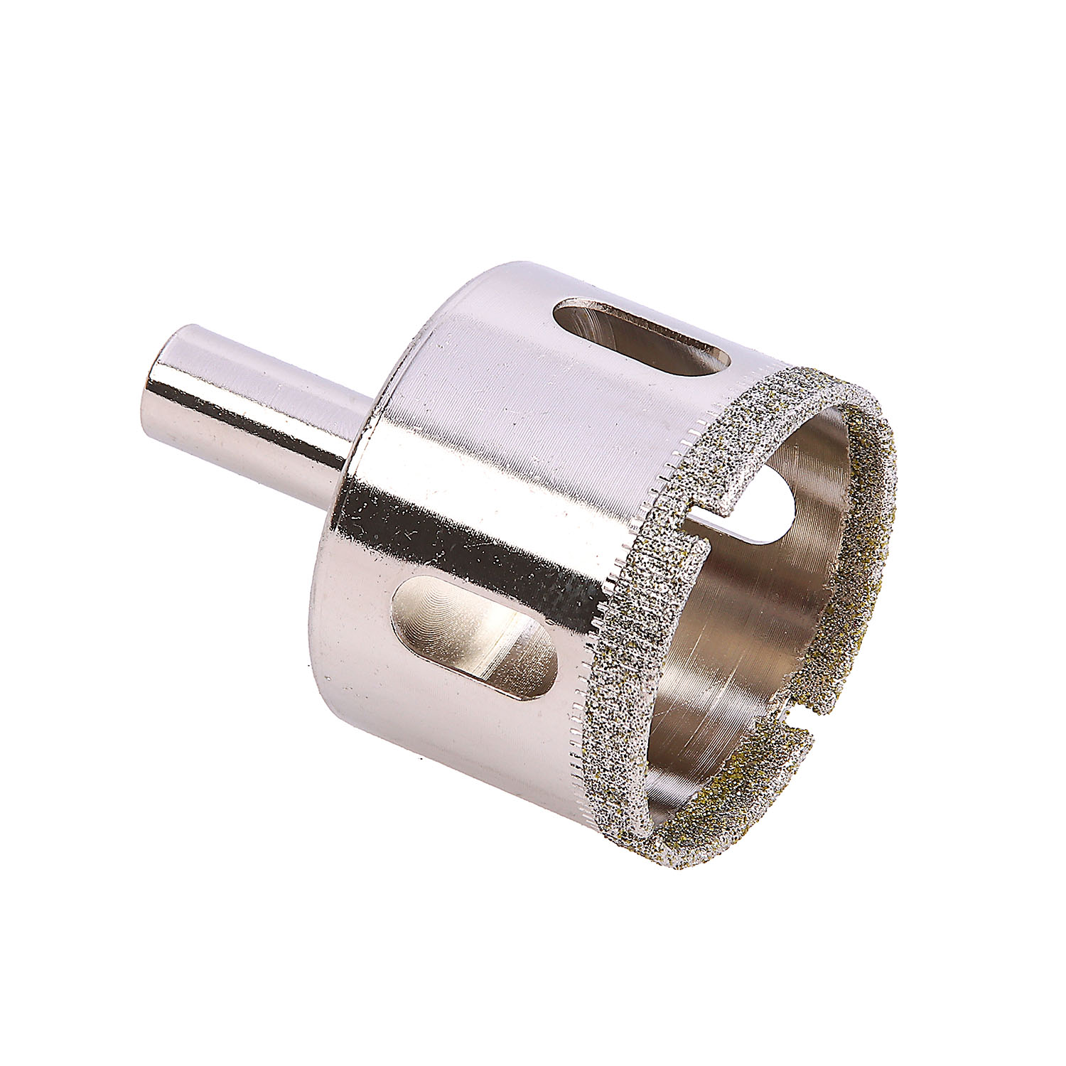 Коронка выполнена из качественной стали, имеет алмазное напыление, за счет которого отличается высокими режущими свойствами и длительным сроком службы.