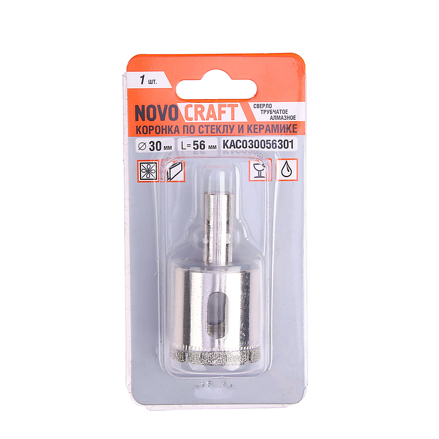 Коронка алмазная Novocraft KAC030056301 предназначена для работы с дрелью для сверления отверстий в таких материалах как стекло и керамика.