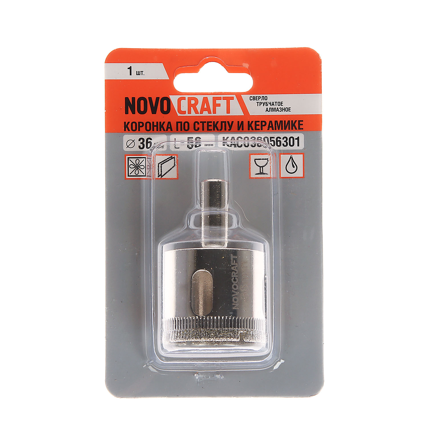 Коронка алмазная Novocraft KAC036056301 предназначена для работы с дрелью для сверления отверстий в таких материалах как стекло и керамика.