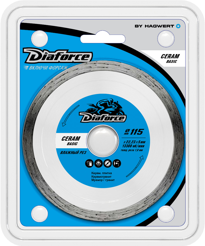 Алмазные диски Diaforce предназначены для резки бетона, натурального и искусственного камня, кирпича, а так же чистого реза керамических изделий, в том числе твердого керамогранита и всех видов керамической плитки.