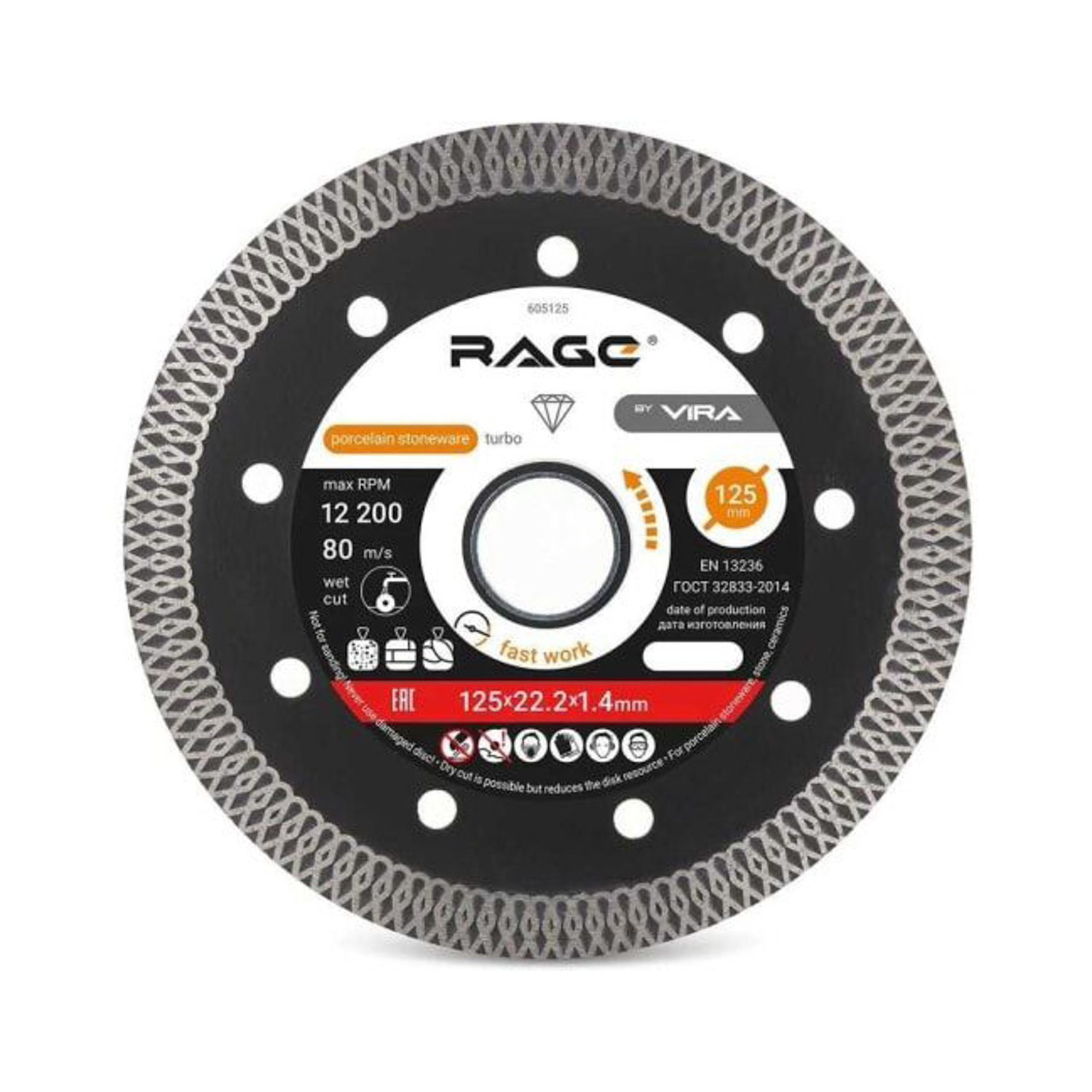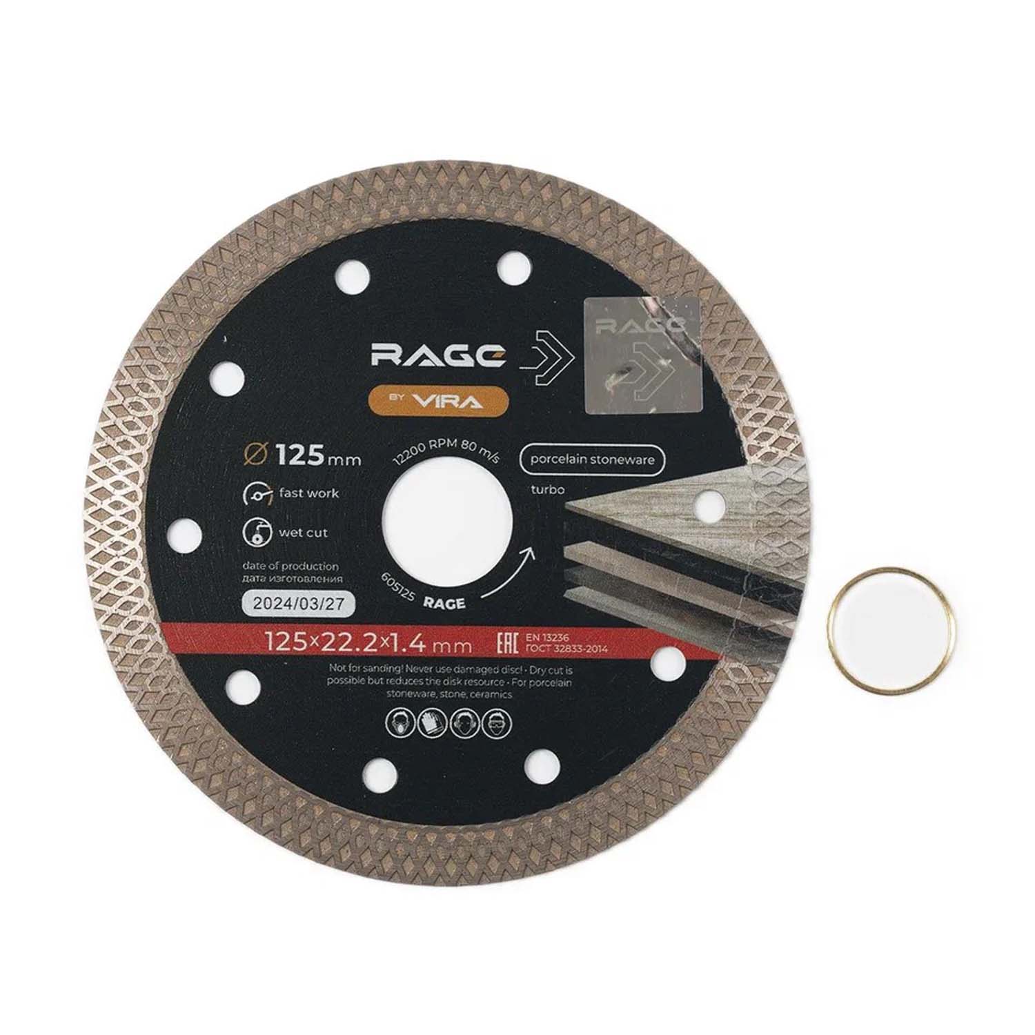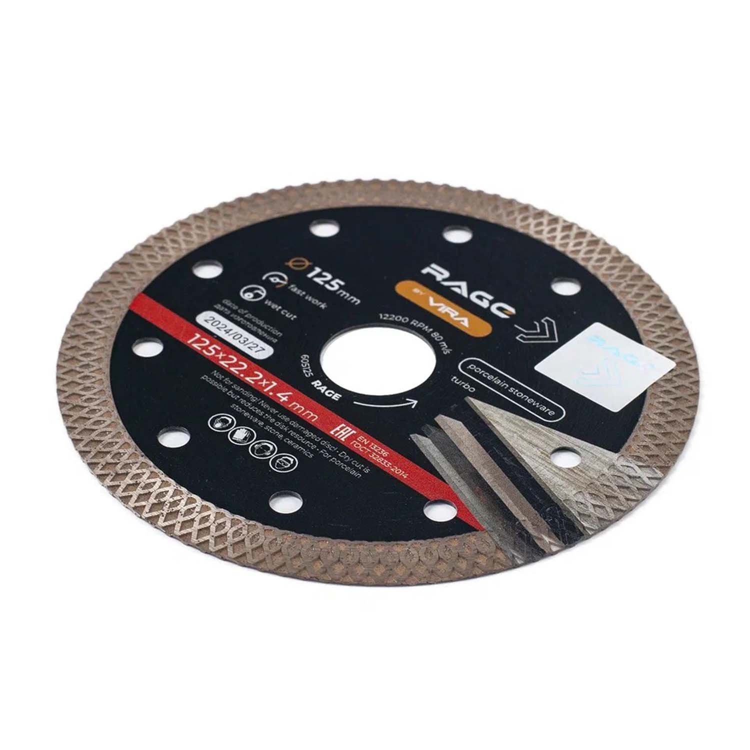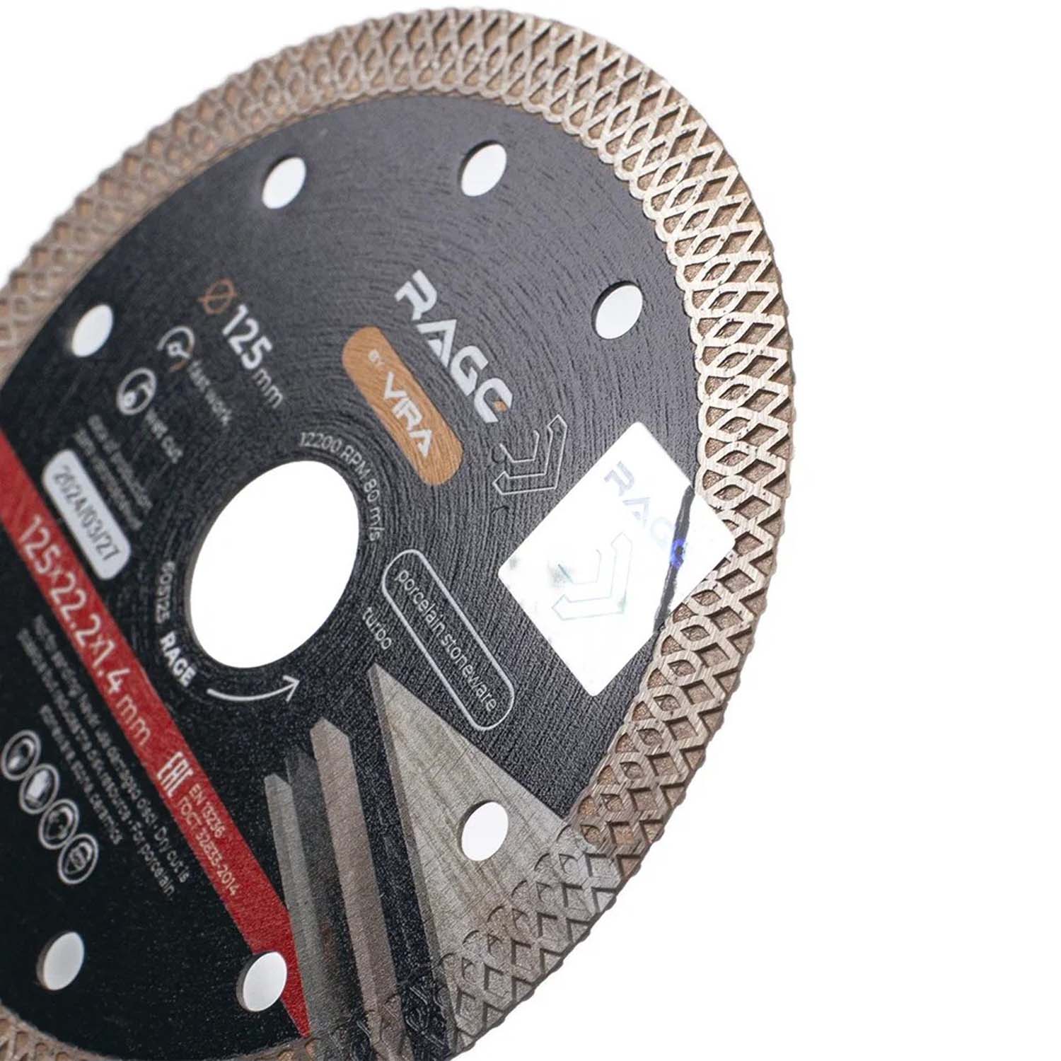 Диск алмазный турбо ультратонкий по керамограниту RAGEVIRA 605125предназначен для угловых шлифмашин (болгарок).