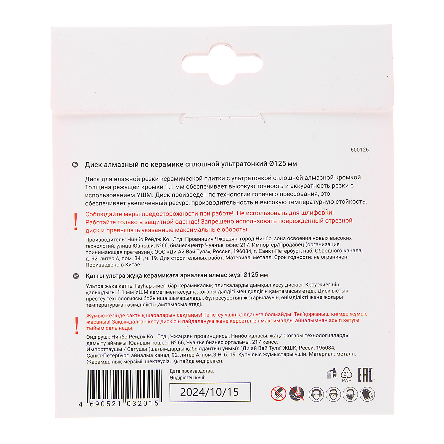 Тип реза: сухой / мокрый (мокрый рез значительно увеличивает ресурс диска);