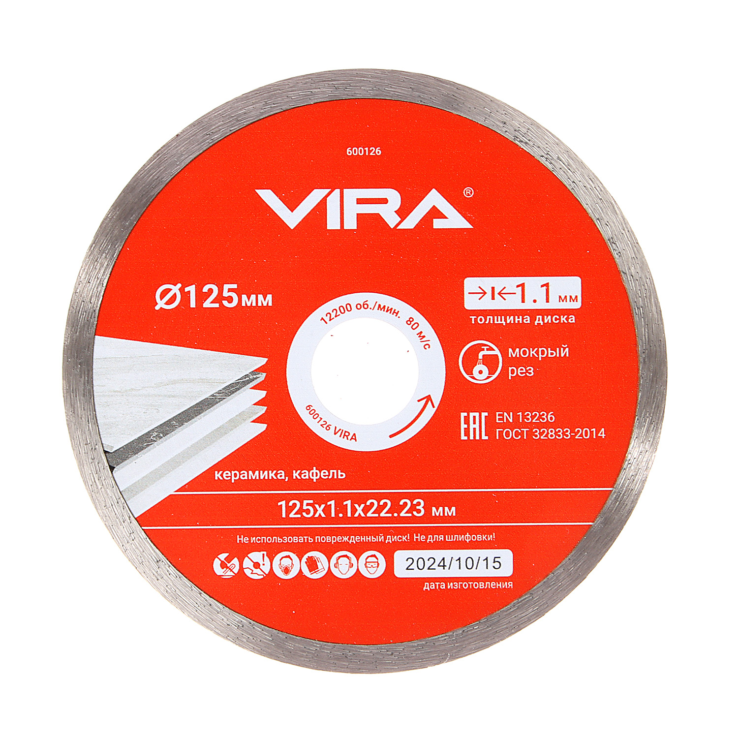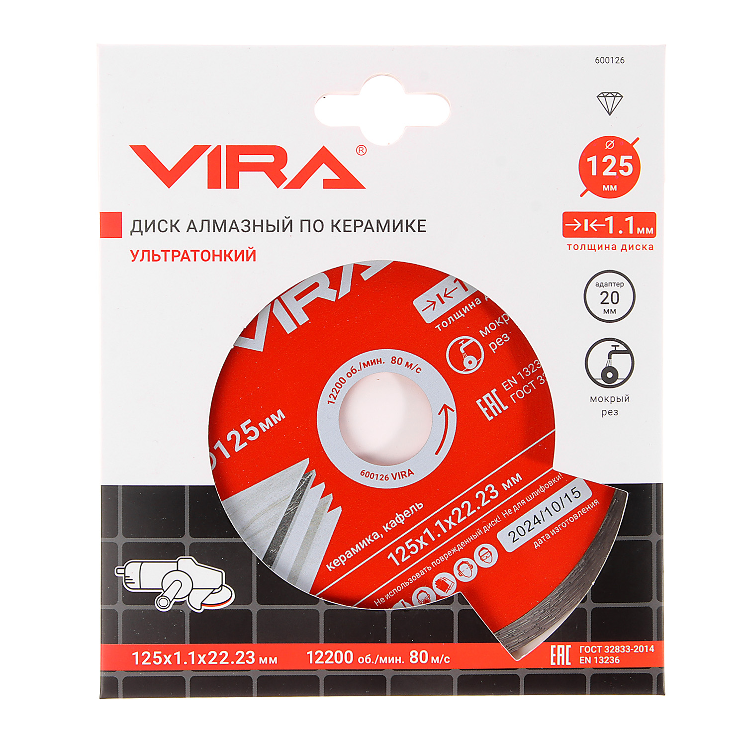 Диск алмазный по керамике сплошной ультратонкий VIRA подходит как для бытового, так и промышленного применения. За счет своей минимальной толщины диск обеспечивает точный, гладкий рез без сколов. Предназначен для резки керамической плитки, керамогранита.