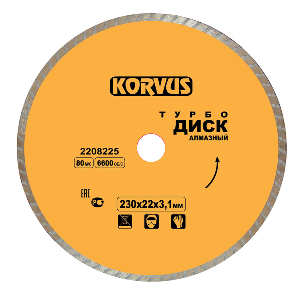 Диск алмазный турбо 230x3.1x22 мм Korvus 2208225 Лк-00003267 применяется для высокопроизводительного и точного пиления с водяным или воздушным охлаждением (без сколов и трещин) бетона, природного и искусственного камня, огнеупорного кирпича, мрамора, гранита и иных строительных материалов.
