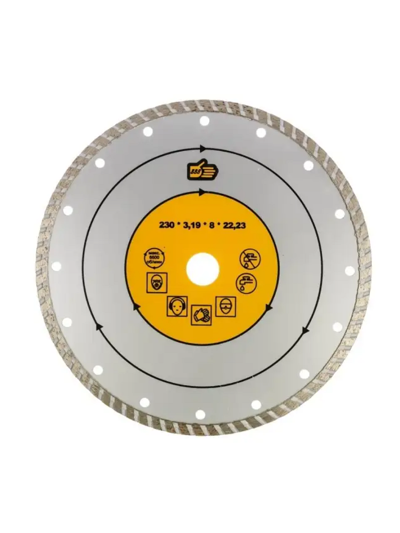 Диск для сухого и мокрого реза. Турбо. Предназначен для разрезания гранита, мрамора, бетона. Отличаются высокими эксплуатационными характеристиками и долгим сроком службы