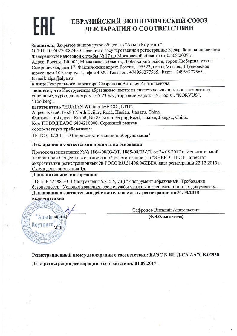 Диск алмазный применяется для высокопроизводительного и точного пиления с водяным или воздушным охлаждением (без сколов и трещин) бетона, природного и искусственного камня, огнеупорного кирпича, мрамора, гранита и иных строительных материалов.