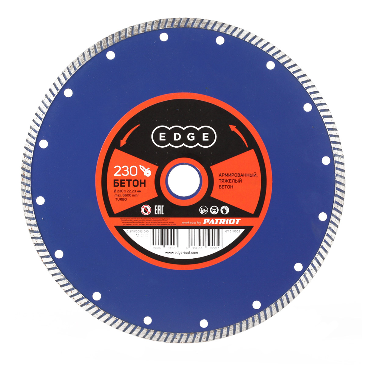 Диск алмазный Турбо PATRIOT 811010002 предназначен для резки бетона и армированного бетона с помощью угловой шлифовальной машины.