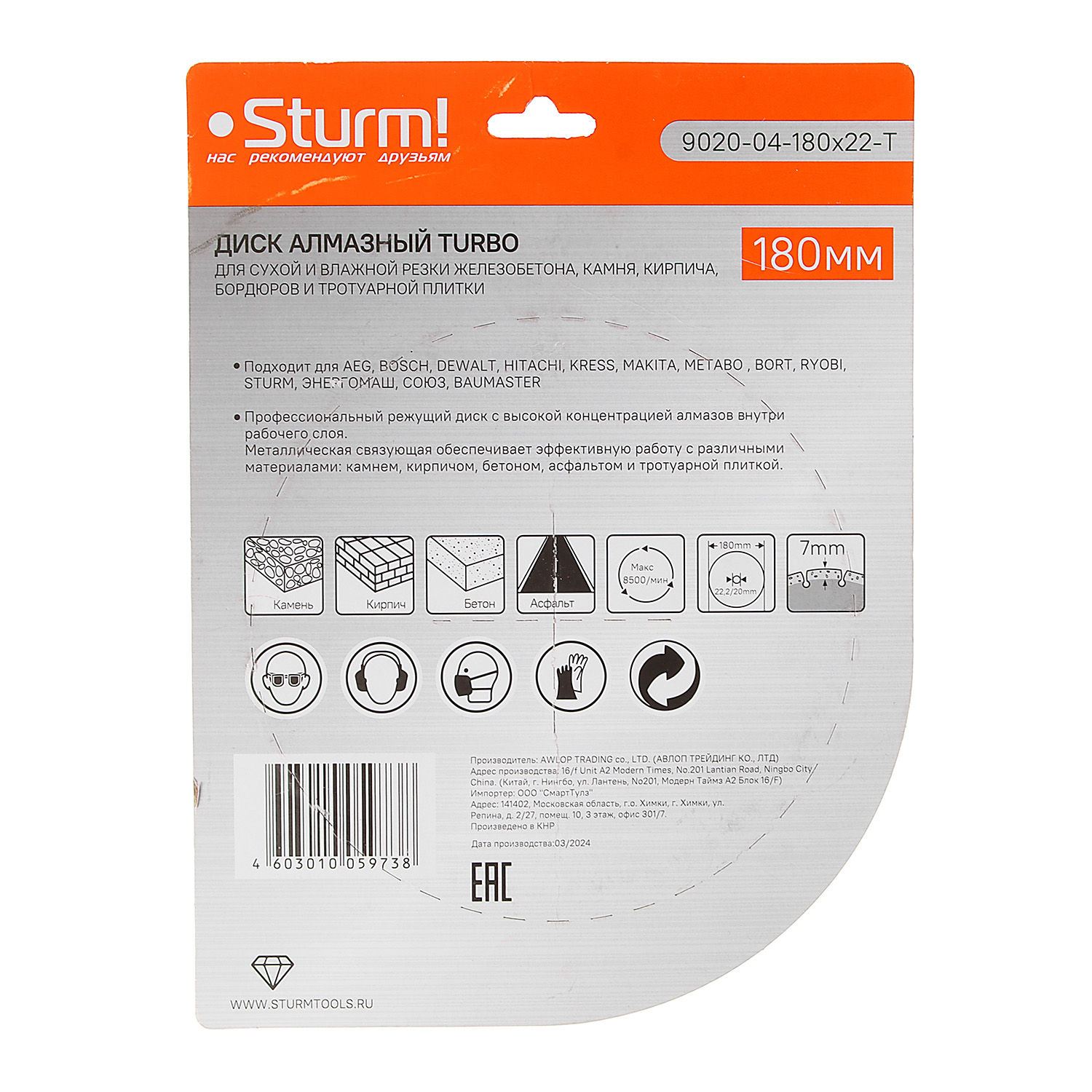 Диаметр диска (мм) 180