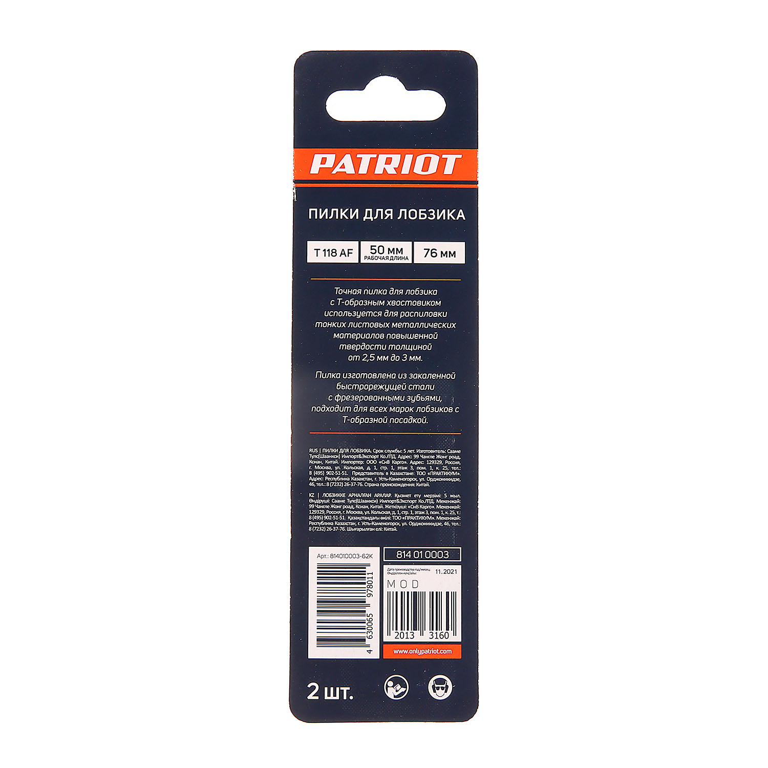 Пилка Т118АF PATRIOT предназначена для резки металлических изделий с помощью электролобзика. Изготовлена из биметалла.