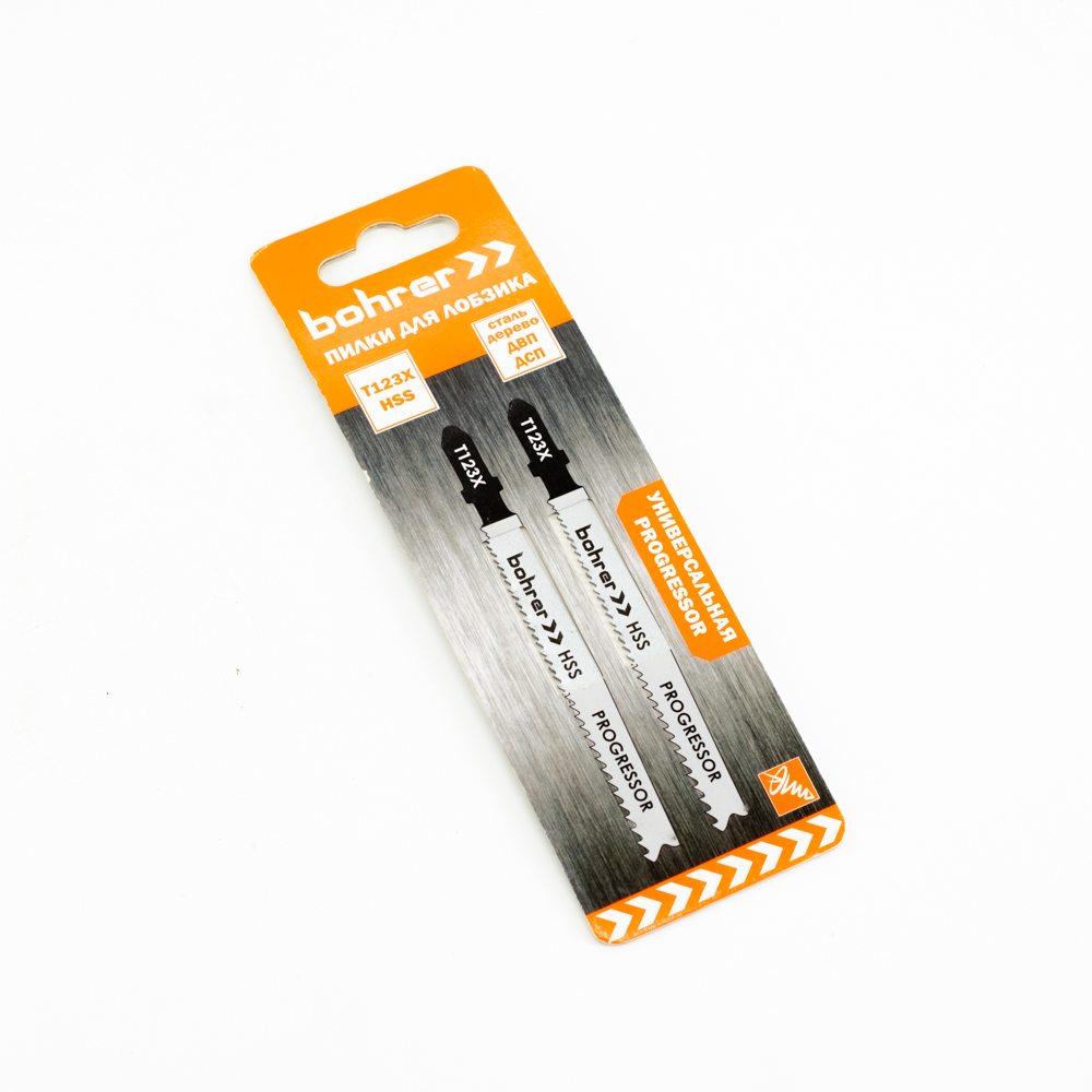 Пилки универсальные для лобзика T123X (2 шт; 100х75 мм; HSS; шаг 1.2-2.6 мм) BOHRER 37301239 подходят для резки стали, дерева, ДВП, ДСП.