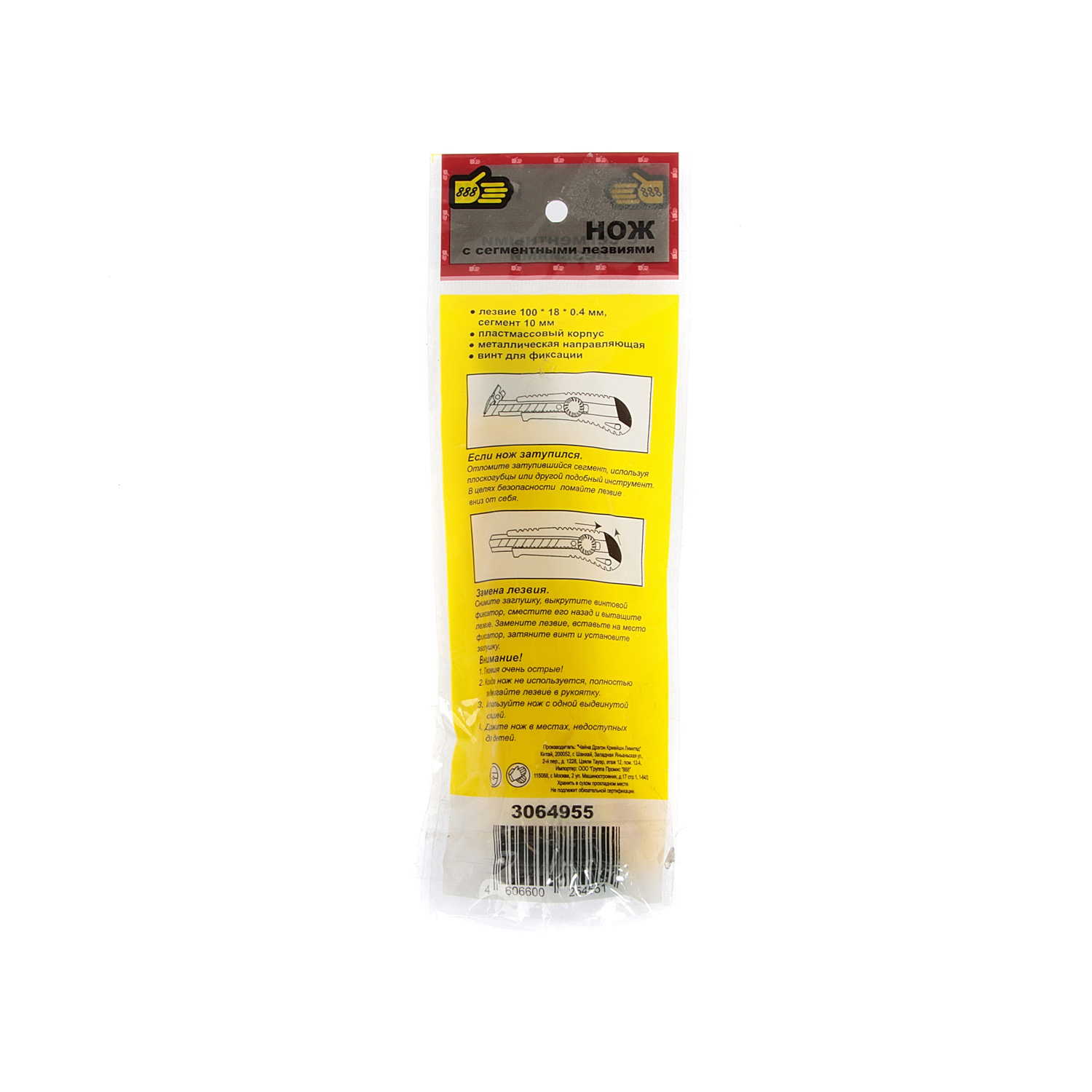 Нож 888 с металлической ведомой, ручная фиксация, 18 мм 3064955 используется для резки различных материалов. Фиксация лезвия на необходимой длине производится вручную.