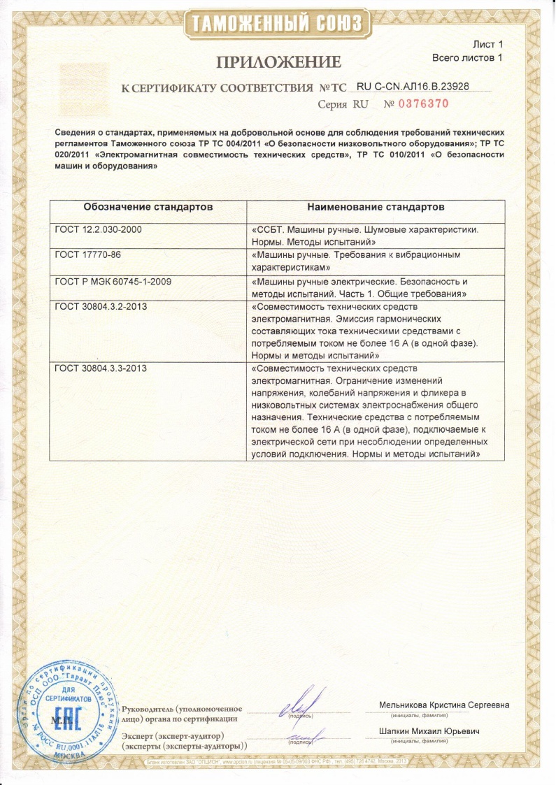 Комплектация: Углошлифовальная машина, Защитный кожух диска, Боковая рукоятка, Комплект угольных щеток, Ключ для затягивания стопорной гайки, Инструкция по эксплуатации.