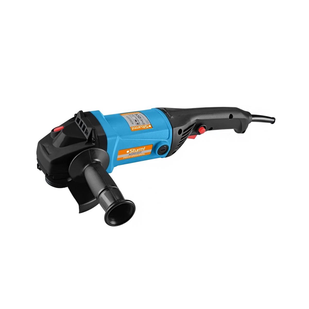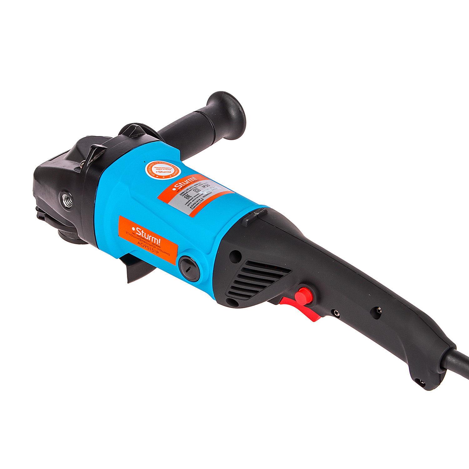 Sturm AG95151P – мощная универсальная болгарка (УШМ) под рабочий диаметр диска 150 мм. Имеет компоновку с длинной рукоятью, что обеспечивает удобство использования и лучший контроль инструмента при зачистных работах. Модель оснащена производительным 1400 ваттным электромотором, гарантирующий запас по мощности даже при энергоемких операциях и позволяющий использование различных типов оснастки, включая алмазные чашки для шлифовки по камню. Являясь представителем профессиональной серии инструмента Sturm, болгарка Sturm AG95151P обладает повышенными показателями по надежности и ресурсу, как за счет применения высококачественных комплектующих (фирменные подшипники C&U), так и благодаря продуманной, с запасом по прочности, конструкции : электромотор покрыт несколькими изоляционными слоями термостойкого лака и имеет защиту от пыли и абразивных частиц, благодаря закалке, повышенной износостойкостью обладают шестерни редуктора, в качестве опор вала шпинделя установлены шарикоподшипники, корпус инструмента изготовлен с использованием стойкого к ударам нейлона. Для дополнительного удобства пользователя, модель снабжена быстросъемным защитным кожухом, надежно фиксирующимся при помощи специального зажимного рычага. Предусмотрена возможность быстрого доступа к щеткам, упрощающая процесс их замены, так как исключает демонтаж элементов корпуса.