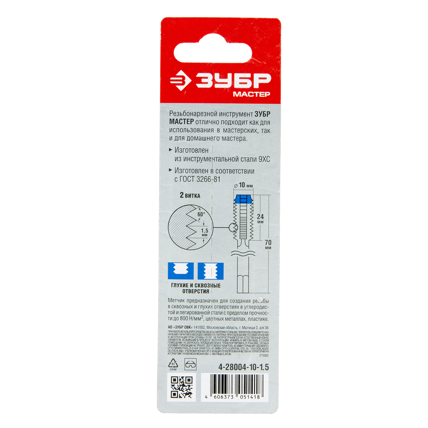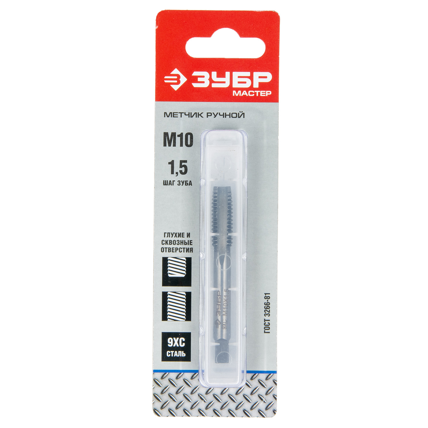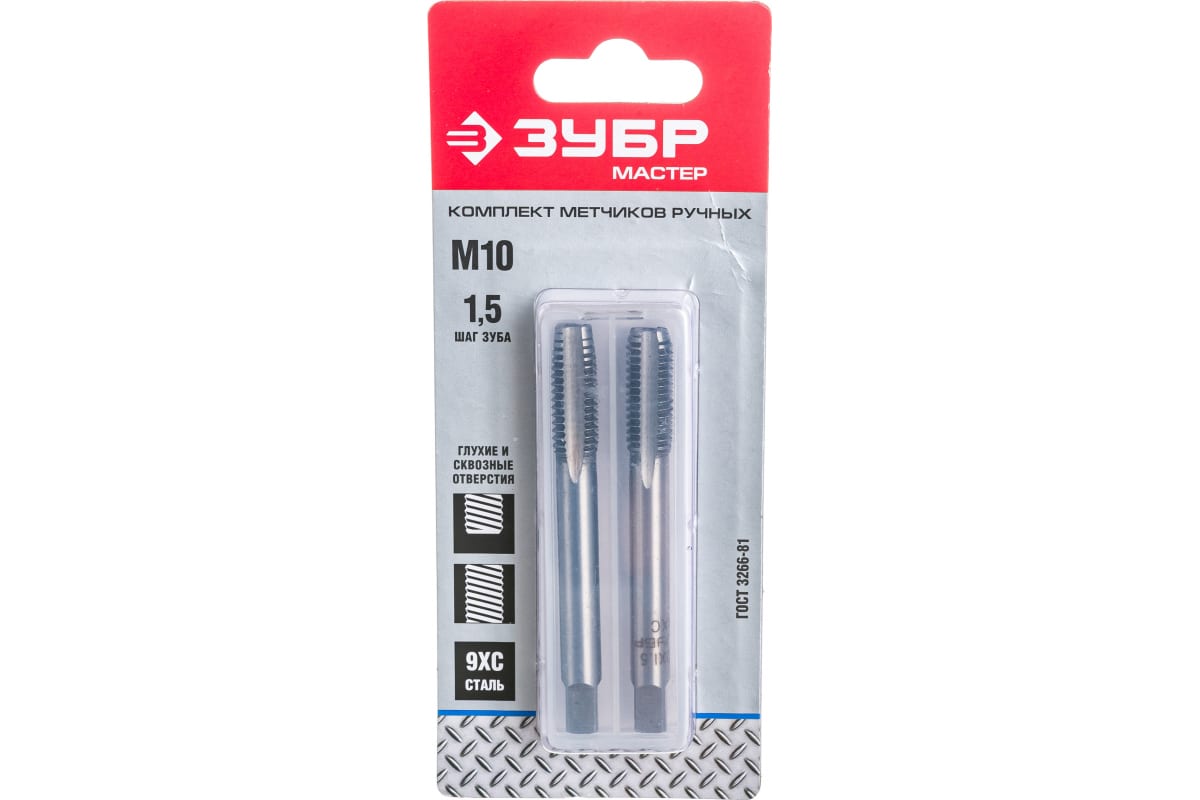 Комплект ручных метчиков ЗУБР Мастер М10 x 1,5 4-28006-10-1.5-H2 состоит из двух предметов.