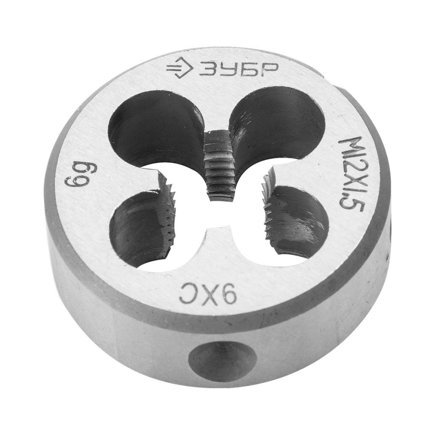 Круглая машинно-ручная плашка для нарезания метрической резьбы, мелкий шаг, М12x1.5 Зубр ПРОФЕССИОНАЛ 4-28023-12-1.5_z01 представляет собой