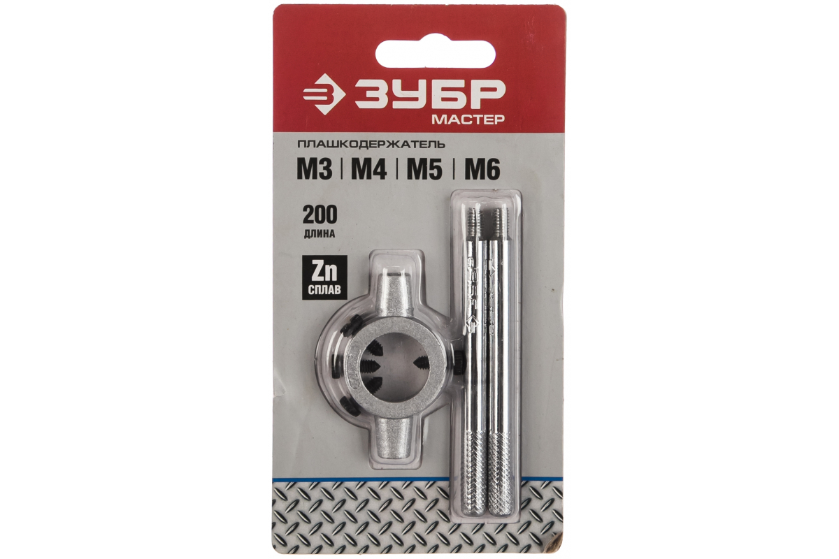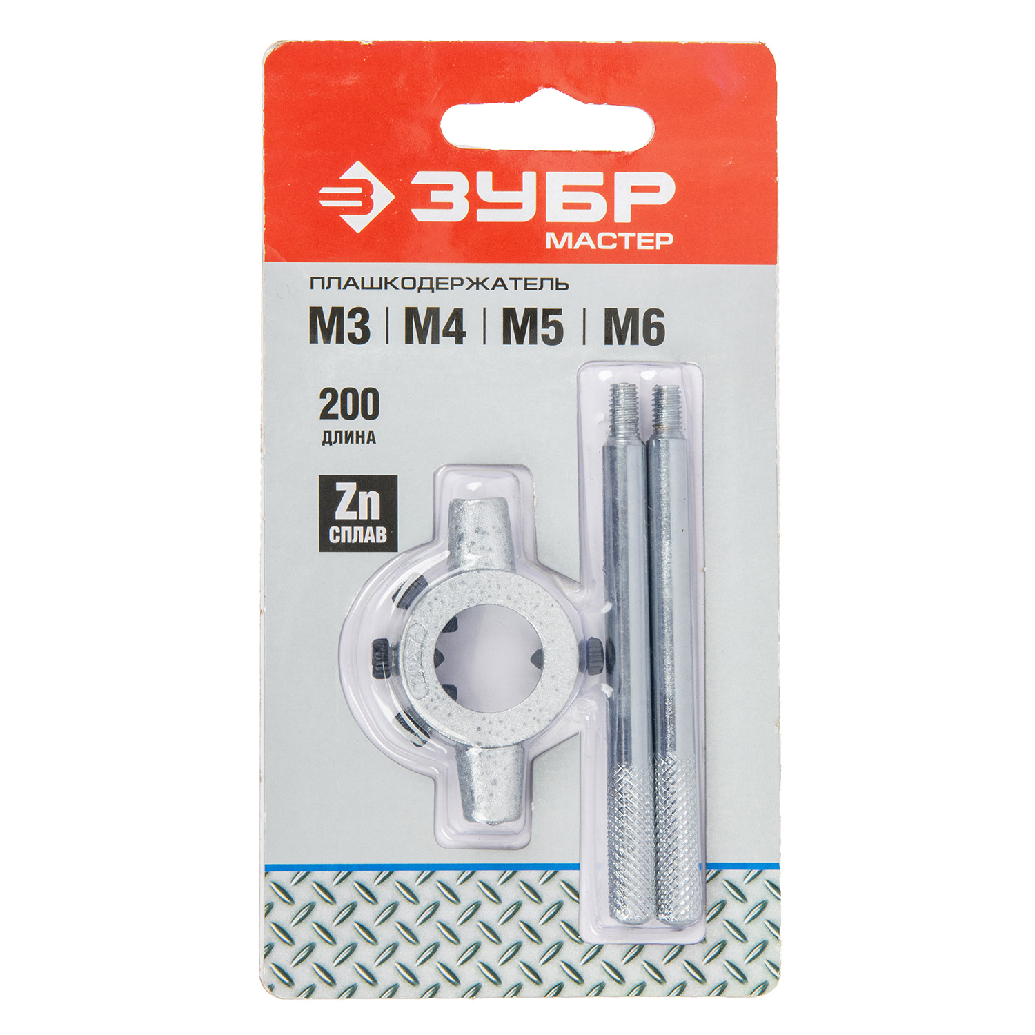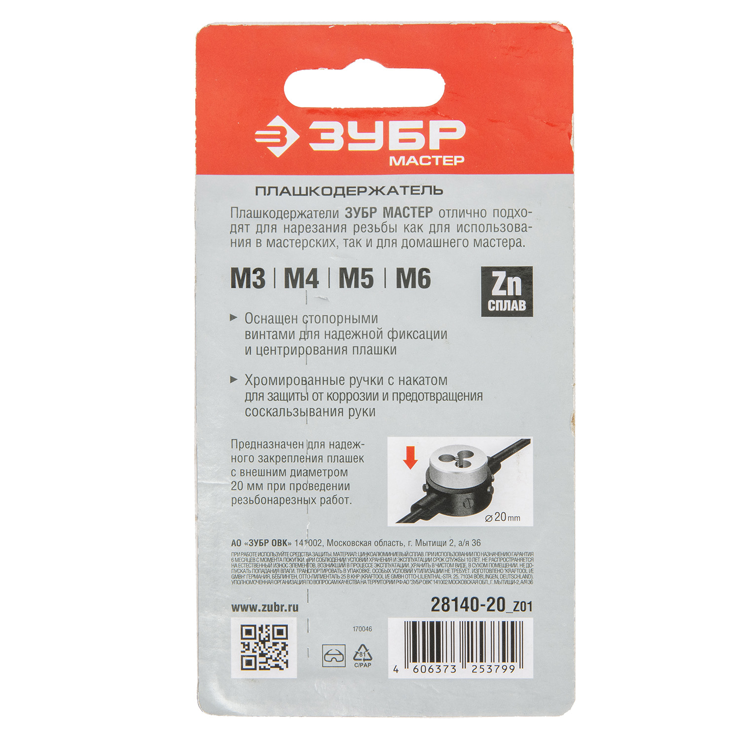 Плашкодержатель 20х7мм для М3, М4, М5, М6 Зубр Мастер L - 200 мм 28140-20 выполнен из цинкоалюминиевого сплава.