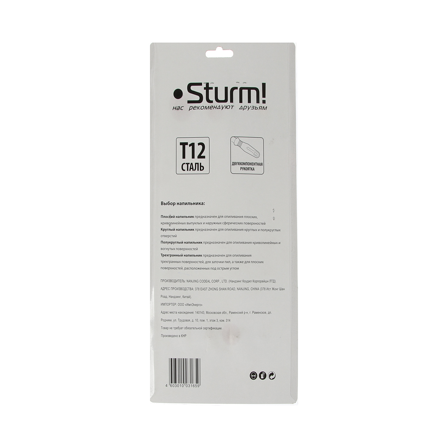 Комплектация Напильники - 4 шт.: плоский, круглый, квадратный, трехгранный