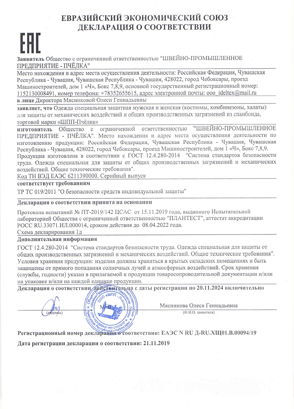Является средством индивидуальной защиты, подтверждено соответствием требованиям ТР ТС 019/2011;