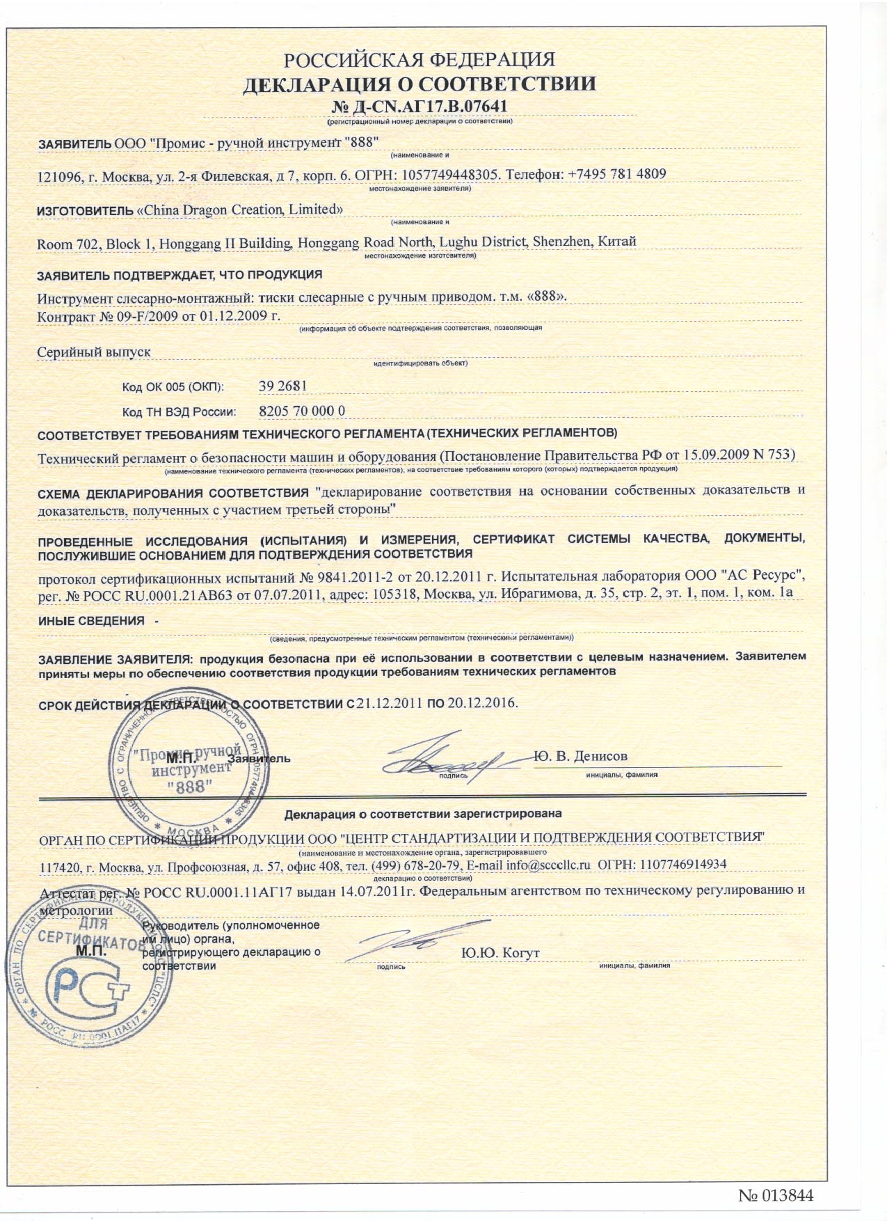 Тиски ручные 175мм (7") "888" (арт.6832727) *1/6/60