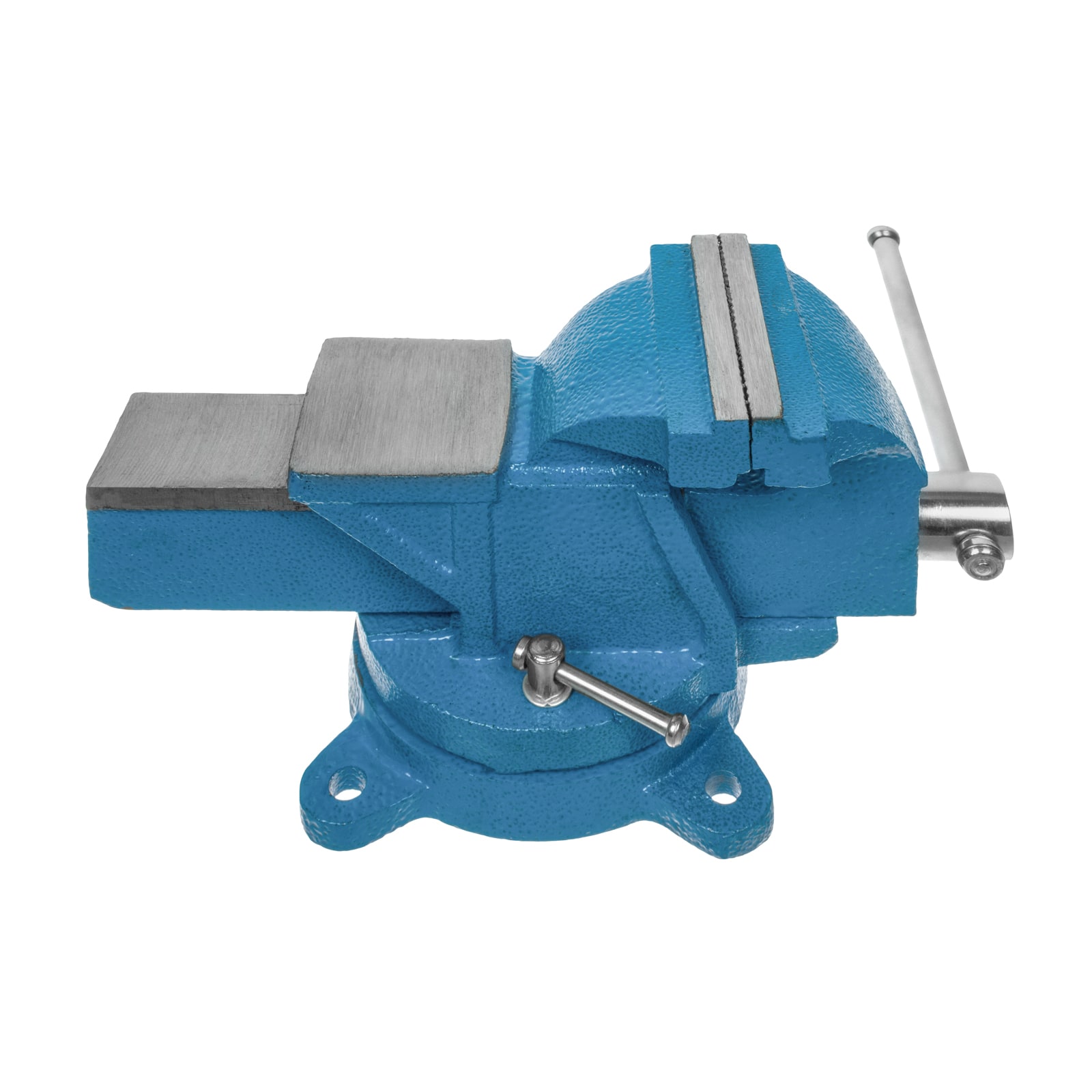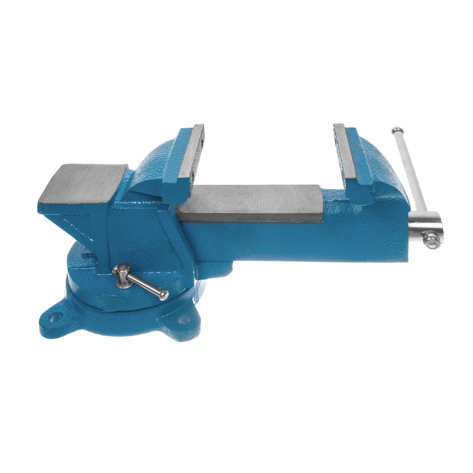 Предназначены для надежной фиксации деталей для дальнейшей сборки или обработки режущим, шлифовальным или легким ударным инструментом. Изготовлены из ковкого чугуна с затягивающим винтом из углеродистой конструкционной стали. Тиски имеют прямоугольную наковальню 70х60мм для правки заготовок легким ударным инструментом: молотком или киянкой. Поворотный механизм позволяет установить тиски в наиболее удобное для обработки детали положение в горизонтальной плоскости. На тисках предусмотрены съемные губки из закаленной инструментальной стали 45 для возможности замены в случае их износа. Крепление на верстаке с помощью 3-х болтов или саморезов не менее 8 мм в диаметре. Ширина губок 100мм, глубина захвата 90 мм, зажимное усилие 1500 кгс, масса 5.2 кг.