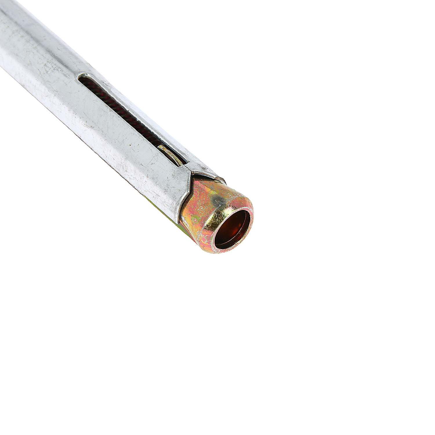 Гильза крепежа оснащена втулкой и конусом, который втягивается при вкручивании винта в распорную зону и создает прочную фиксацию в отверстии основания. Край рамного дюбеля надежно закрепляет пустотелые металлопластиковые конструкции. С гильзой используются винты с плоской головкой и крестообразным шлицем.