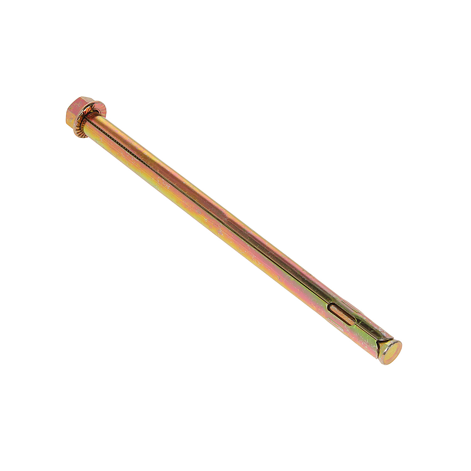 Перед установкой анкерного болта в основании делается монтажное отверстие с таким же диаметром, как у втулки. Затем изделие полностью погружается в толщу материала — снаружи остается только шляпка. При закручивании шпилька с резьбой распирает втулку и закрепляет ее в основании. Благодаря такой системе монтажа метиз приобретает высокую несущую способность и создает прочное соединение.