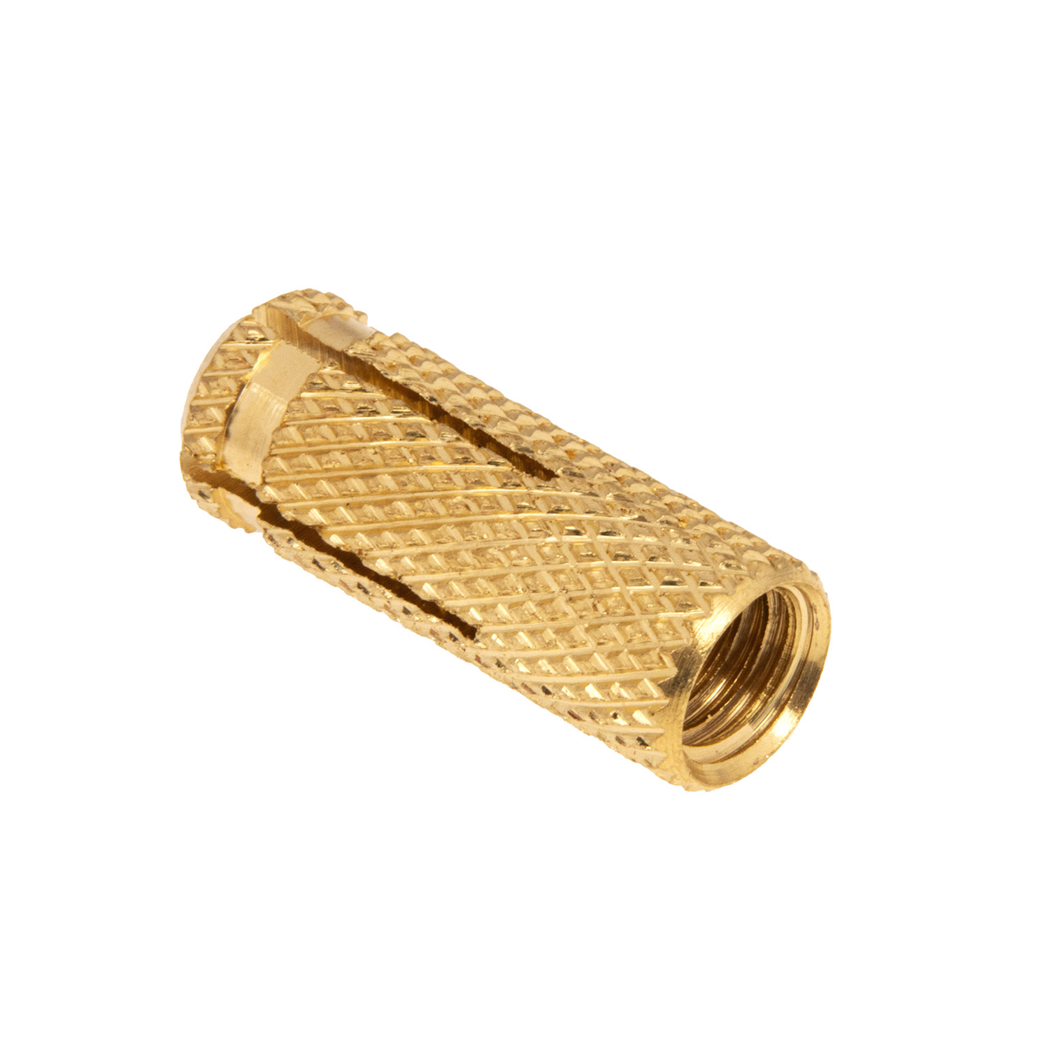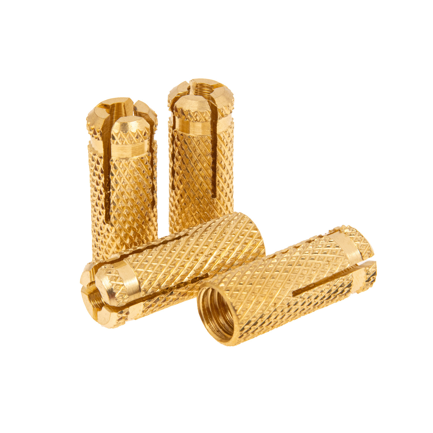 Латунный забивной анкер представляет собой пустотелый цилиндр, внутри которого имеется резьба, а хвостовая часть выполнена в виде распорной зоны из четырех сегментов. Для равномерного расклинивания внутреннее пространство является конусообразным.