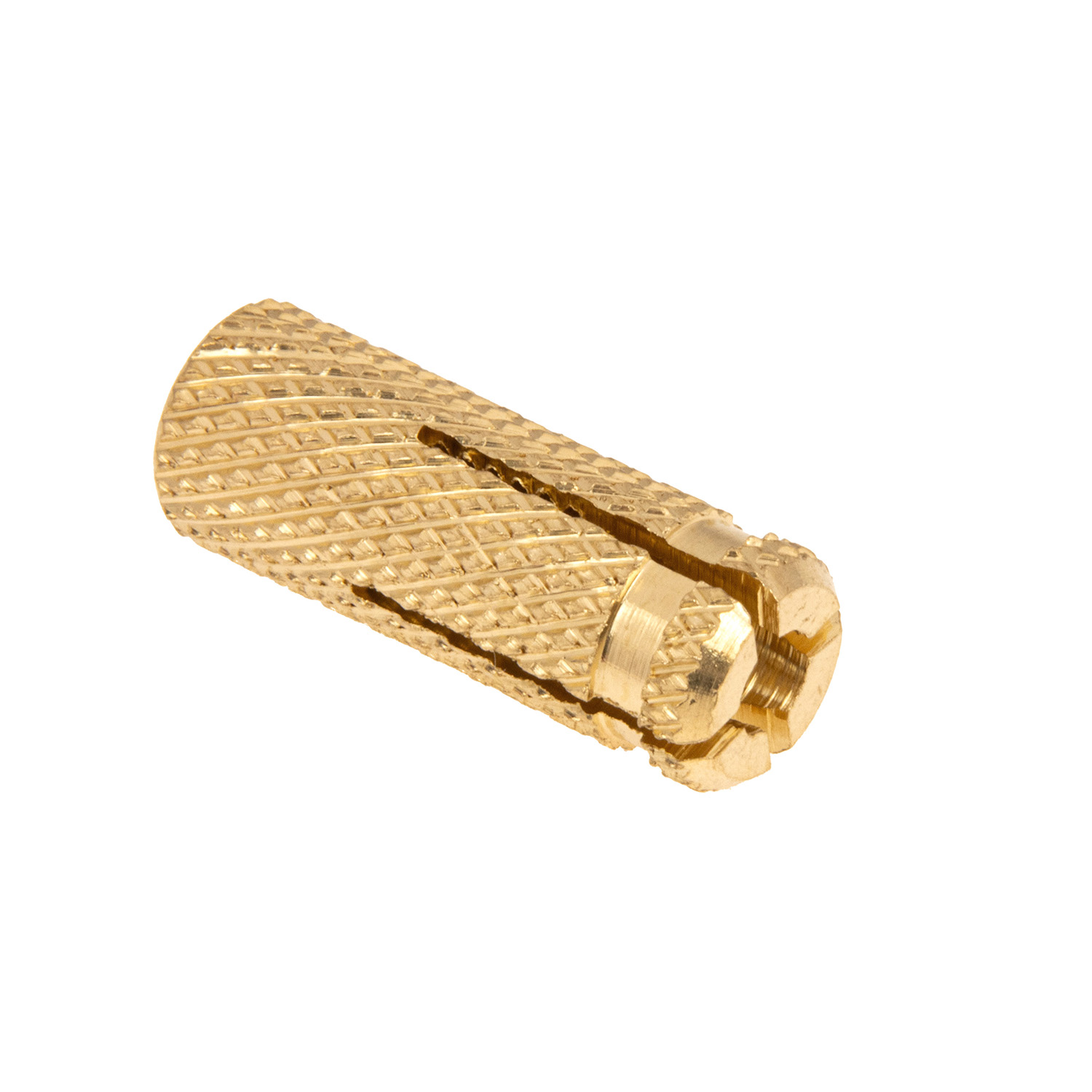 Шероховатая наружная поверхность латунного забивного анкера обеспечивает плотное сцепление со стенками подготовленного отверстия (его диаметр должен соответствовать размеру изделия). При вкручивании болта осуществляется распирание, что значительно улучшает фиксацию.