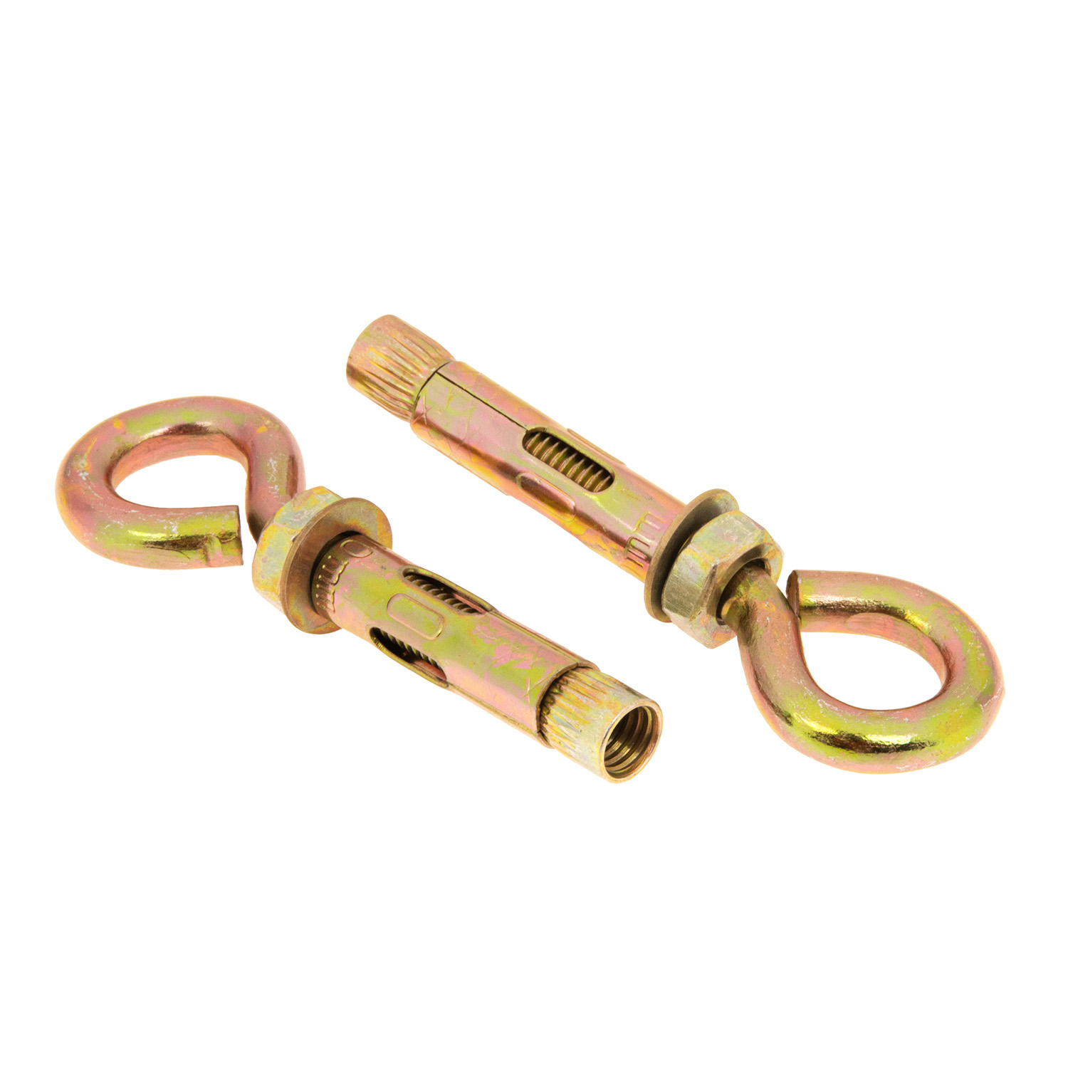 Анкерный болт состоит из распорной гильзы и крепежного винта с кольцом. Устанавливается в просверленное отверстие. После ввинчивания второго элемента и навешивания конструкции происходит расширение втулки. Благодаря этому обеспечивается достаточная несущая способность и надежность фиксации. Кольцевая часть удобна для размещения подвесов, протягивания кабелей. При покупке анкер-болтов нужно учитывать толщину основания и вес.