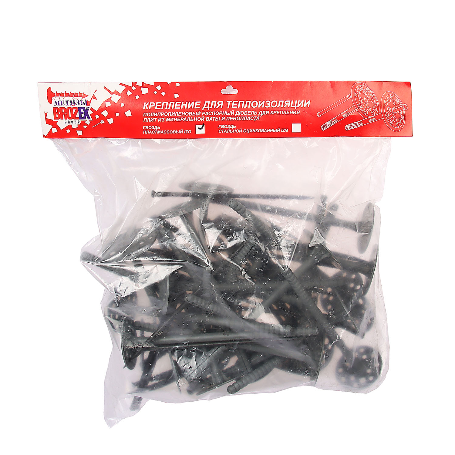 Область применения: крепление теплоизоляционных строительных материалов и изделий толщиной до 150 мм.