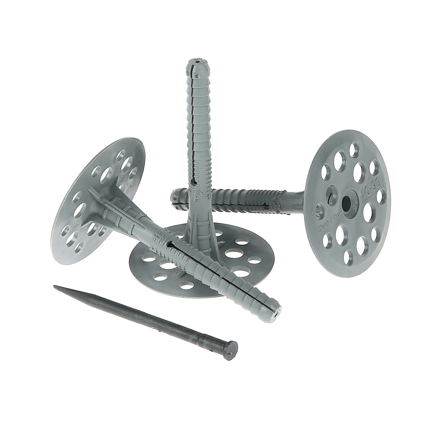 Особенности: увеличенная распорная зона (10 см) дает возможность устанавливать дюбель в пустотелых материалах. Специальные насечки, шипы и зубцы с обратной направленностью на стержне обеспечивают повышенную прочность на вырыв и срез. Повышенная прочность за счет усиленных ребер жесткости в месте соединения шляпки и стержня. Плотное и надежное крепление теплоизоляционных материалов благодаря диаметру шляпки — 60 мм. Гвоздь, выполненный из более жесткого материала, гарантированно забивается, увеличивая общее тепловое сопротивление дюбеля. Установка производится методом сквозного монтажа. В среднем на 1 кв. м площади теплоизоляции применяется 5-8 дюбелей.
