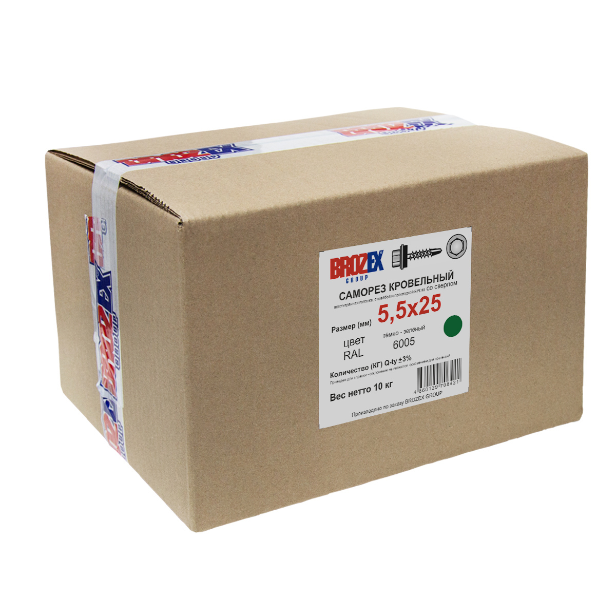 Саморезы кровельные BROZEX 5,5*25 RAL6005 (темно-зеленый) (10кг) промтара *10