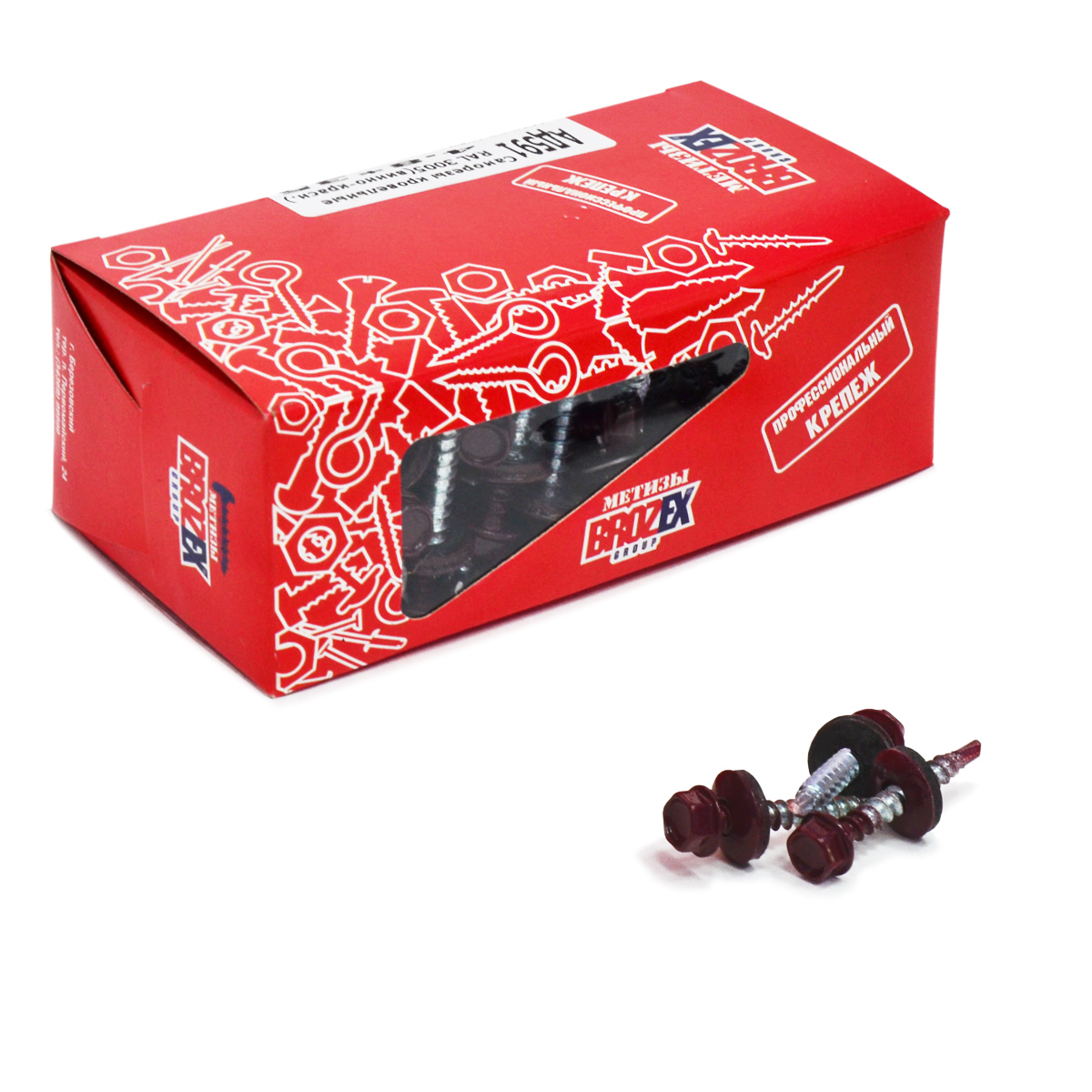 Саморезы кровельные BROZEX коробка 4,8*35 (100шт) RAL 3005 винно-красный *6