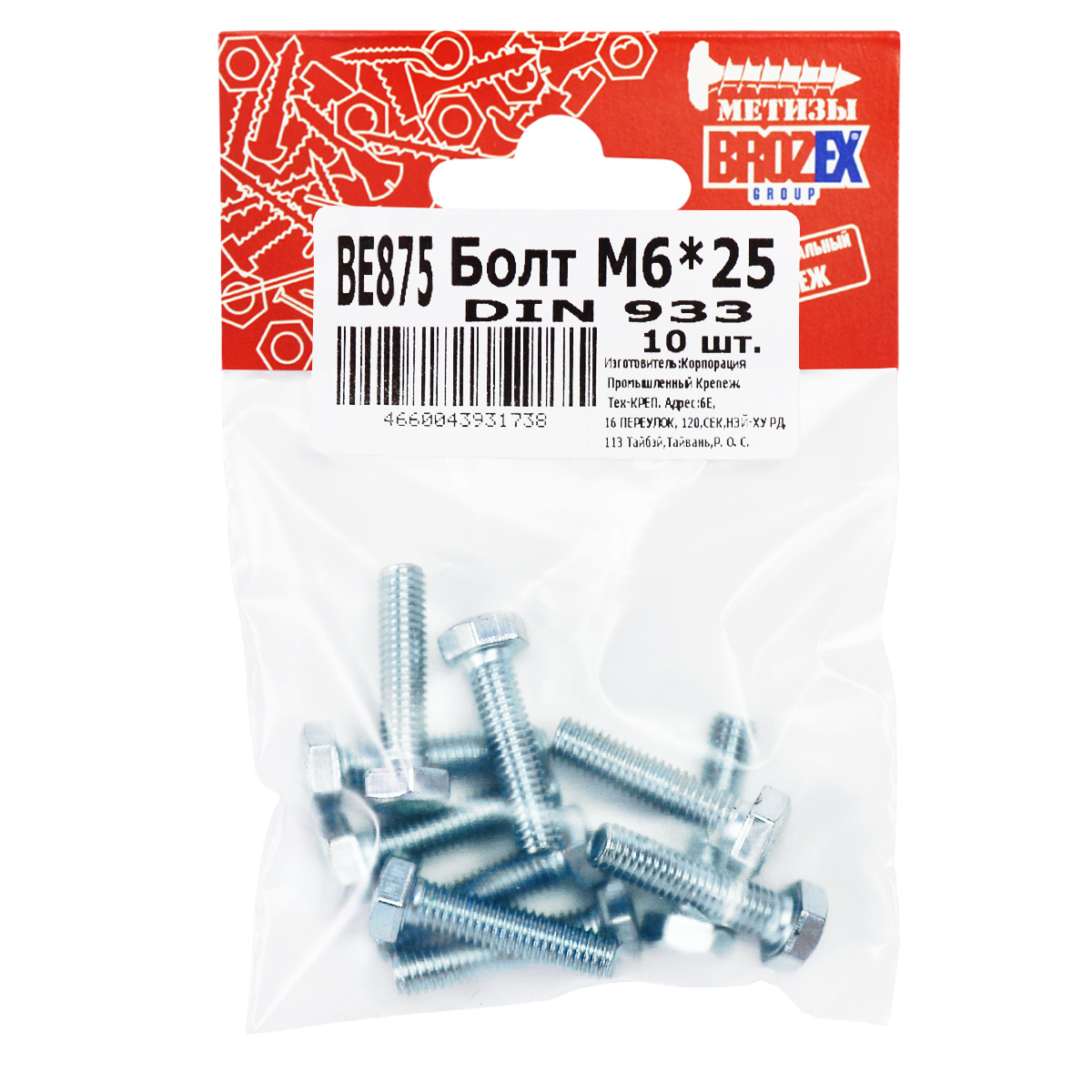 Болт DIN933 BROZEX М6*25 (10шт) *10/100