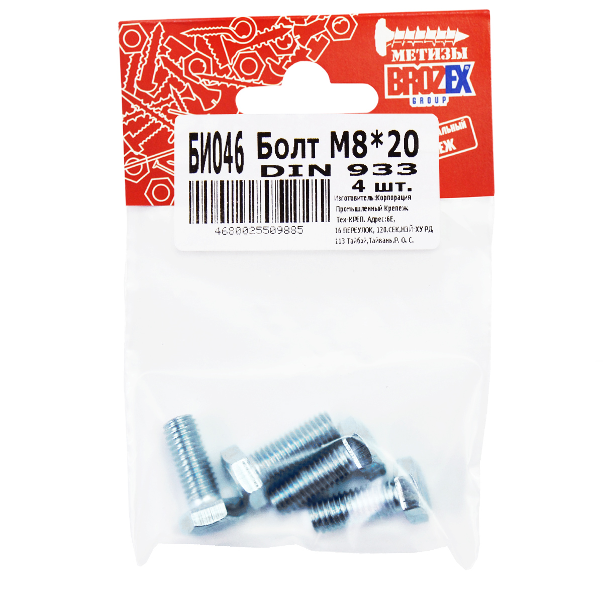Болт DIN933 BROZEX М8*20 (4шт) *10/100