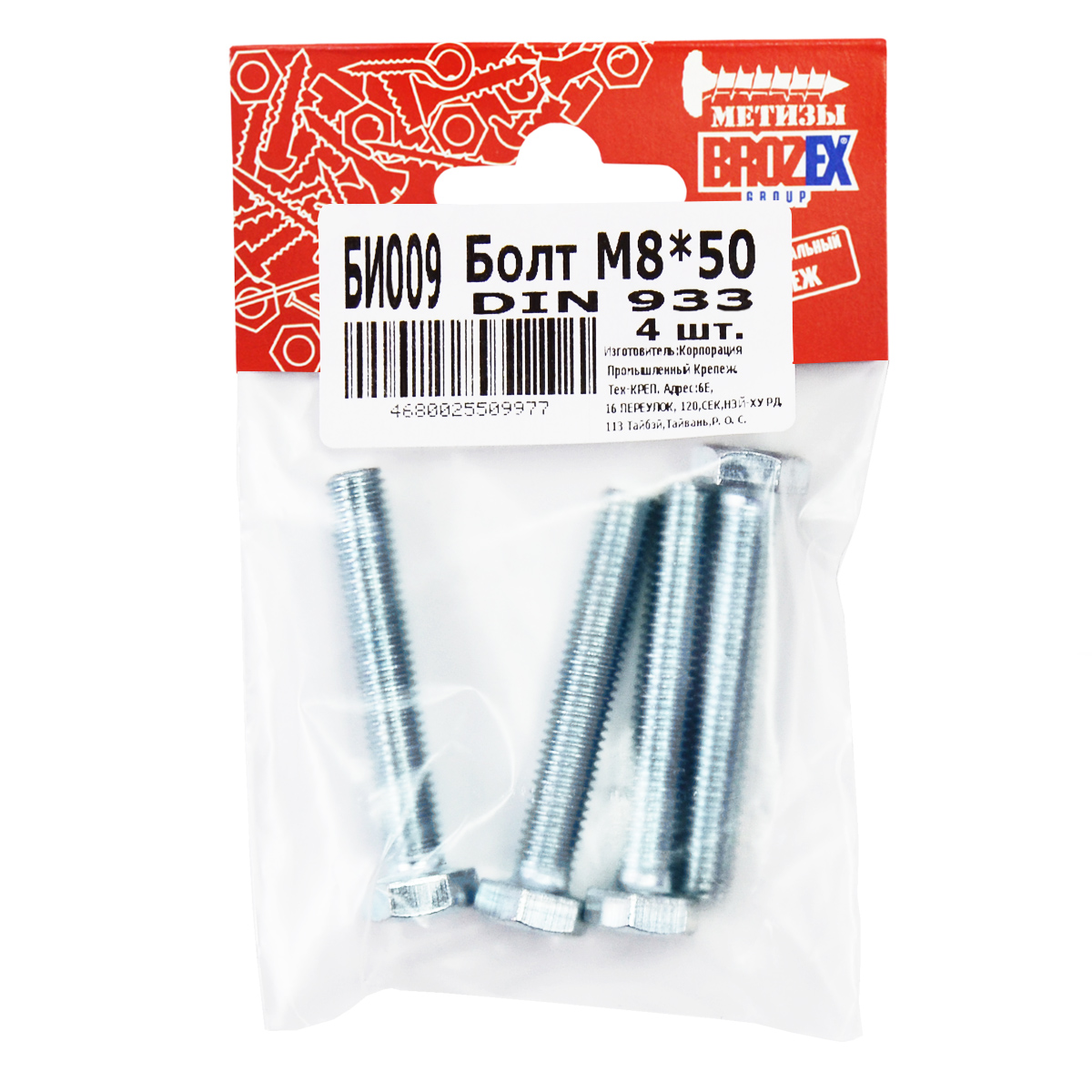 Болт DIN933 BROZEX М8*50 (4шт) *10/100