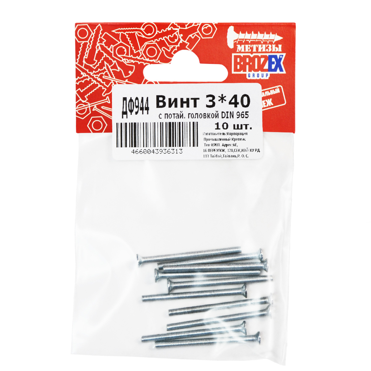 Винт с потайной головкой DIN965 3х40 (10шт) пакет BROZEX *10/100