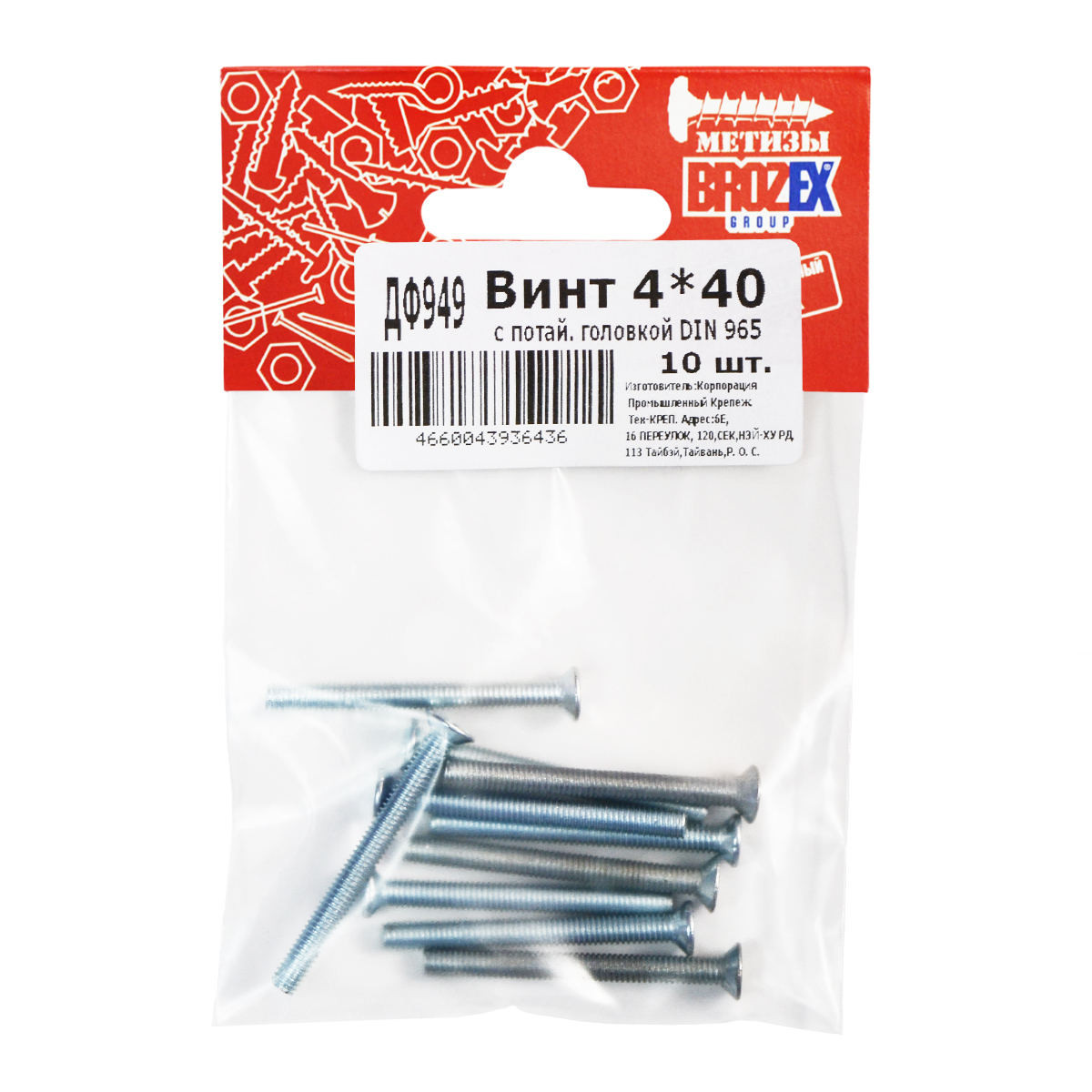 Винт с потайной головкой DIN965 4х40 (10шт) пакет BROZEX *10/100