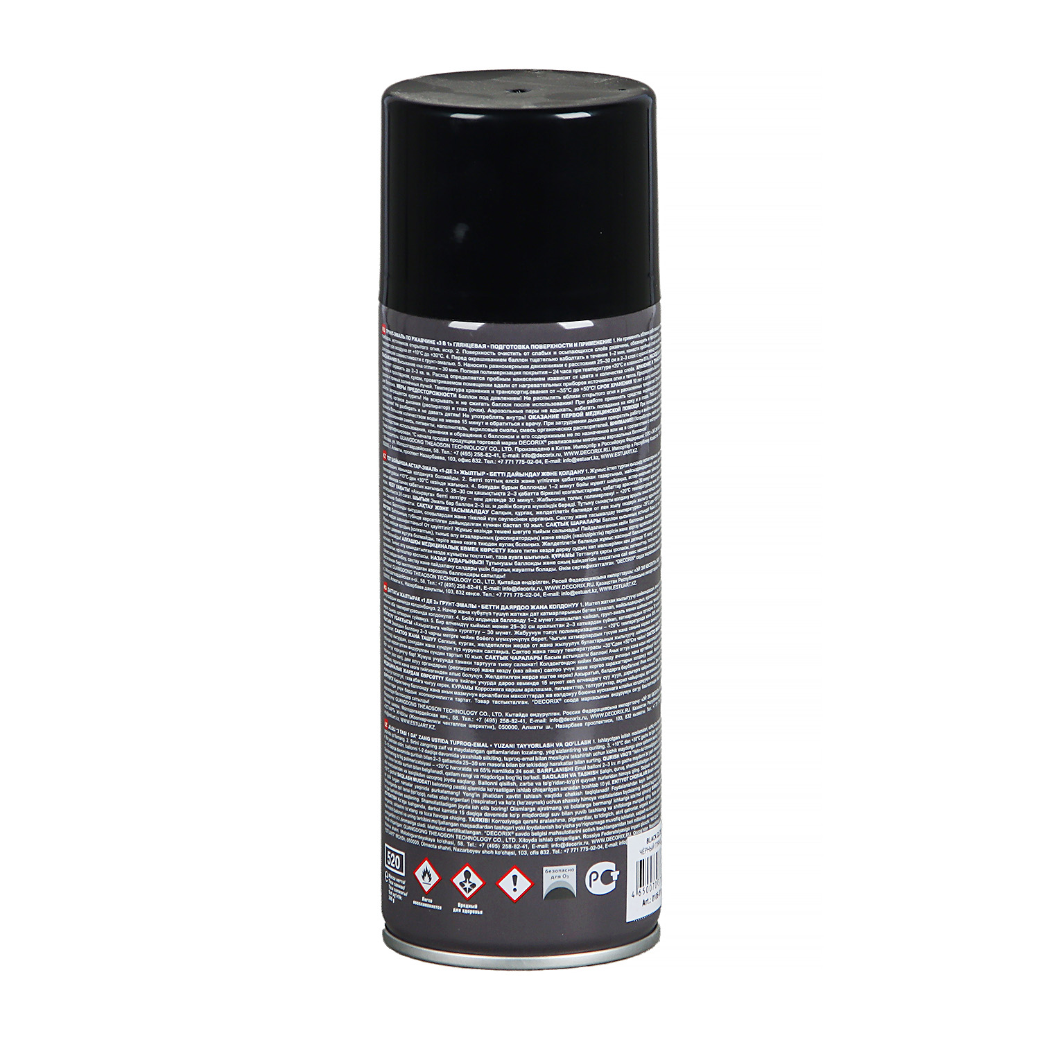 Аэрозольная грунт-эмаль по ржавчине DECORIX 3в1, чёрная глянцевая (520мл)