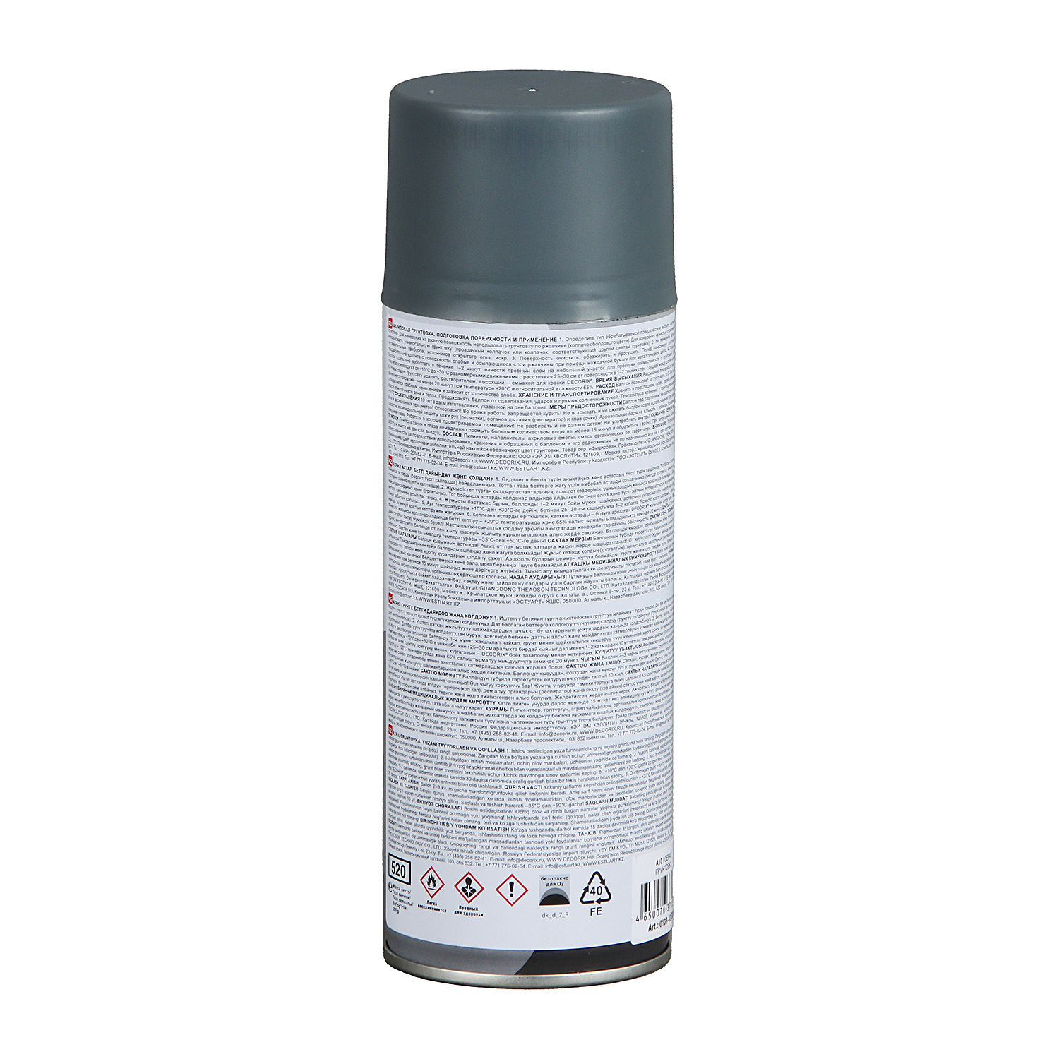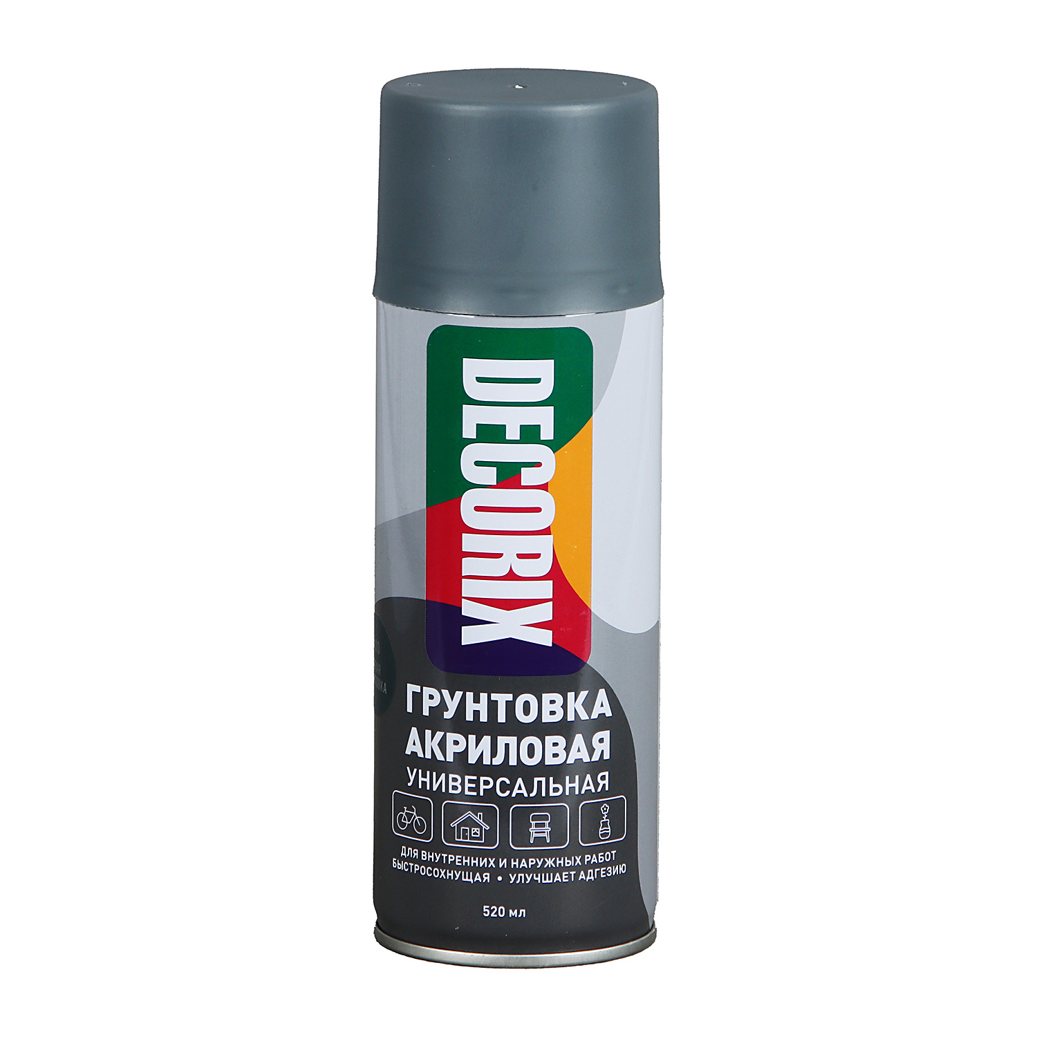 Аэрозольная грунтовка акриловая DECORIX, серая (520мл)