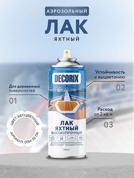 Лак яхтный DECORIX® применяется для финишной защитно-декоративной отделки поверхностей палуб, палубных надстроек, кают и других деревянных элементов всех видов морских и речных судов.
