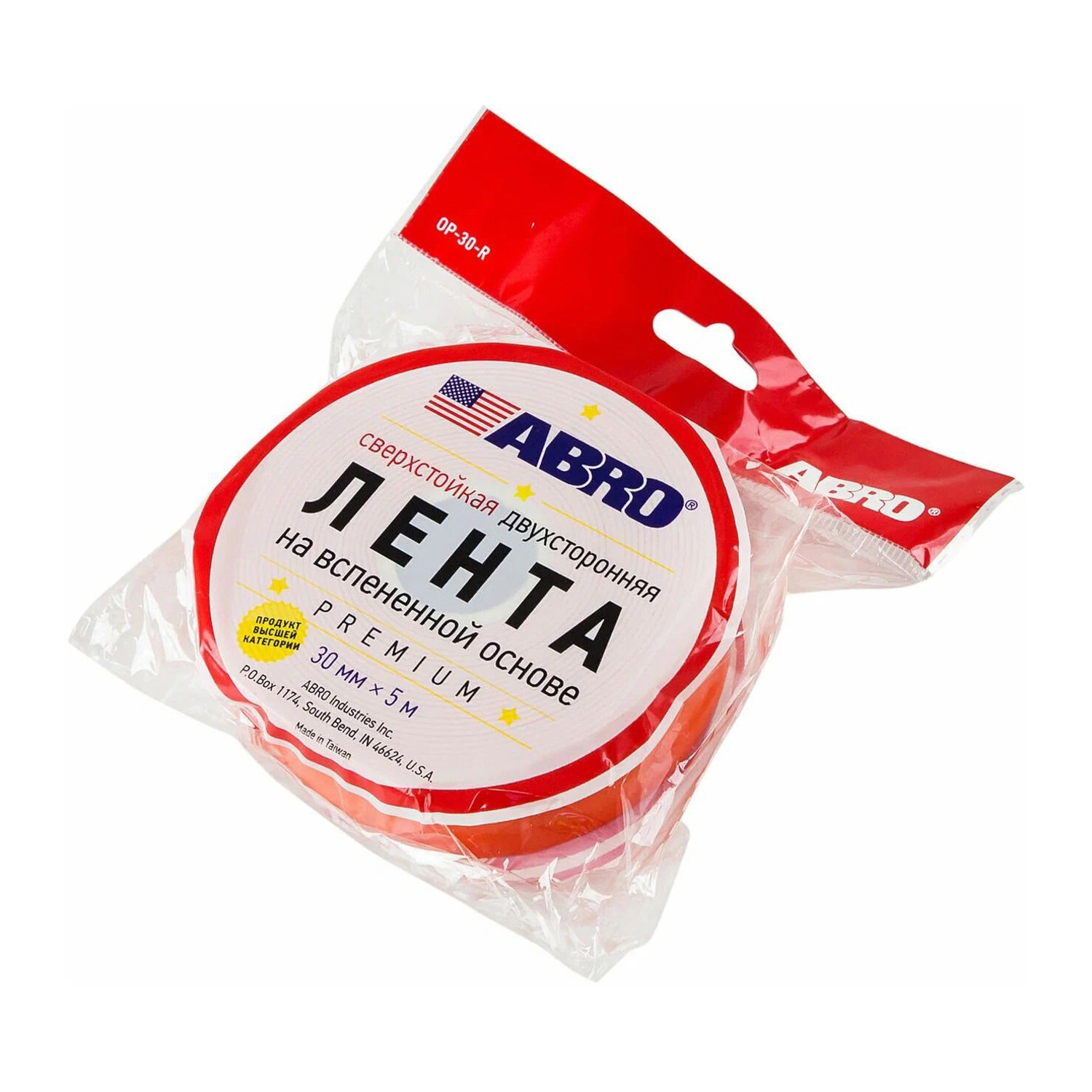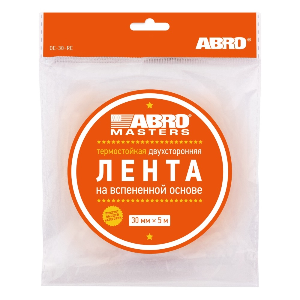 Лента клейкая двусторонняя вспененный ЭВЦ Термостойкая Белая 30мм х5м OE-30-R "ABRO" *1/275