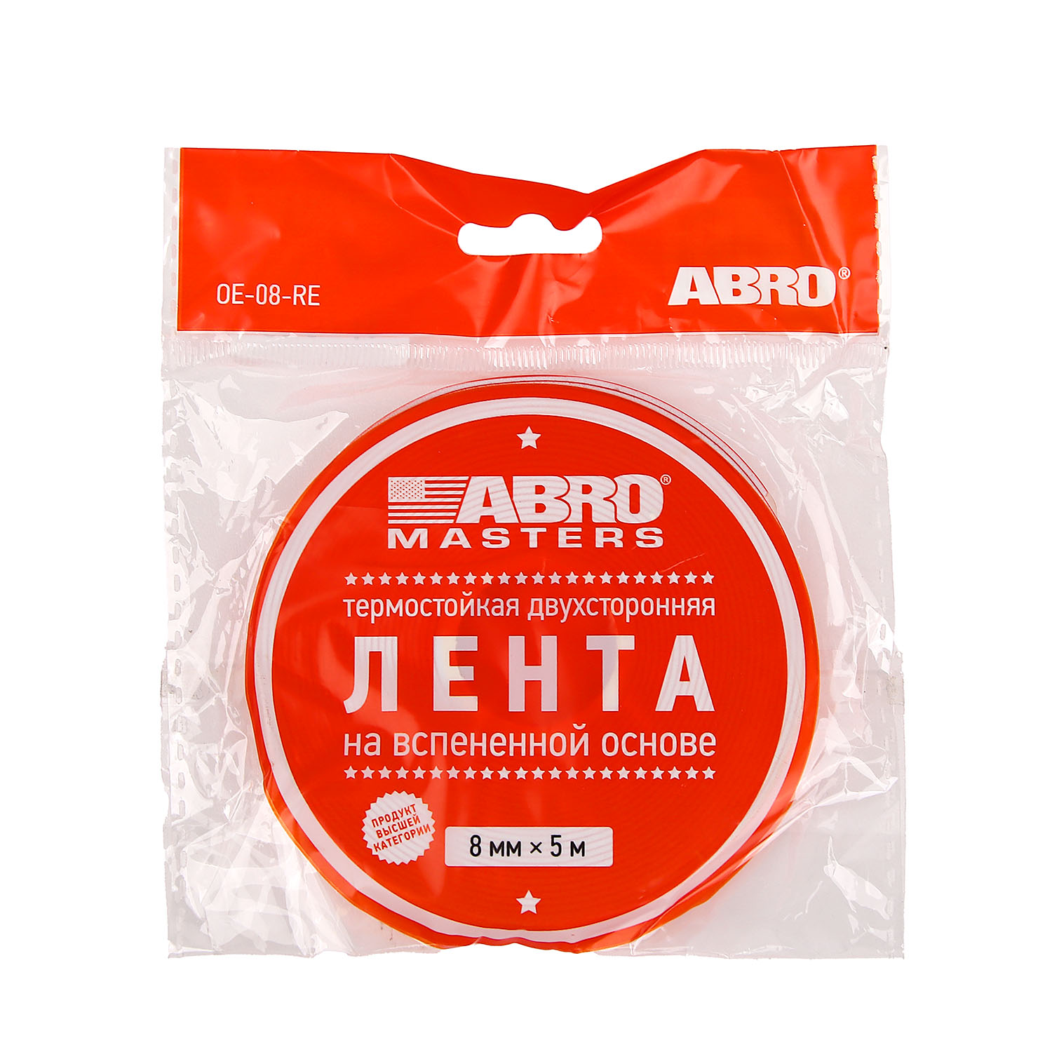 Лента клейкая двусторонняя вспененный ЭВЦ Термостойкая Белая 8мм х5м OE-08-RE "ABRO" *1/1075