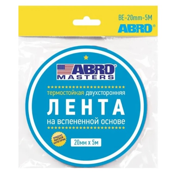 Лента клейкая двусторонняя на вспененной основе Термост. Черная 20мм х5м BE-20mm-5M "ABRO" *1/450