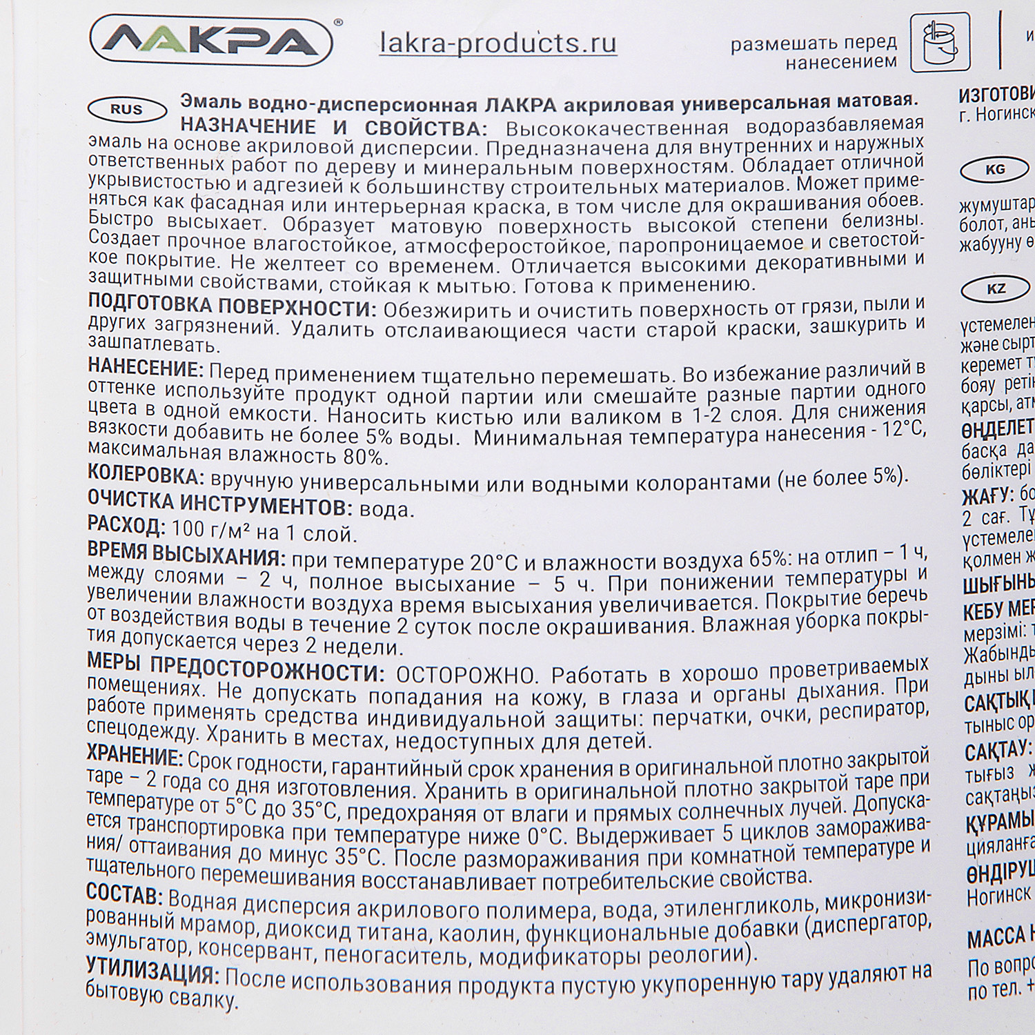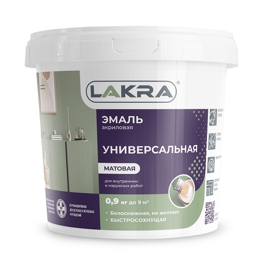 Эмаль акриловая белая матовая 0,9 кг Лакра универсальная *1/6/432