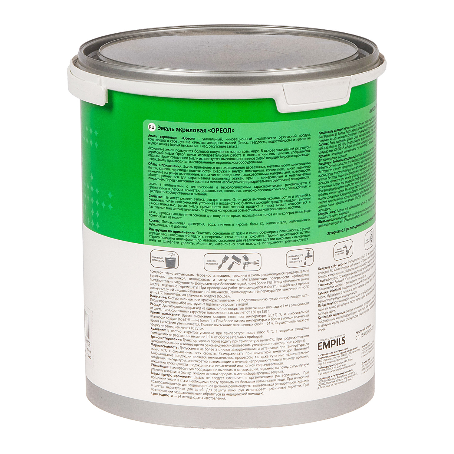 Для окрашивания деревянных, металлических, минеральных поверхностей снаружи и внутри помещений, кроме пола, также возможно нанесение на ранее окрашенные, в том числе алкидными материалами, поверхности. Может применяться для окрашивания цокольных этажей, крыш с минеральным и металлическим покрытием. Перед нанесением эмали на металл необходимо предварительное грунтование поверхности.