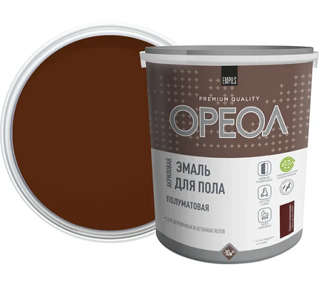 Эмаль акриловая для пола красно-коричневая полуматовая 2,3 кг Ореол *1/4/216